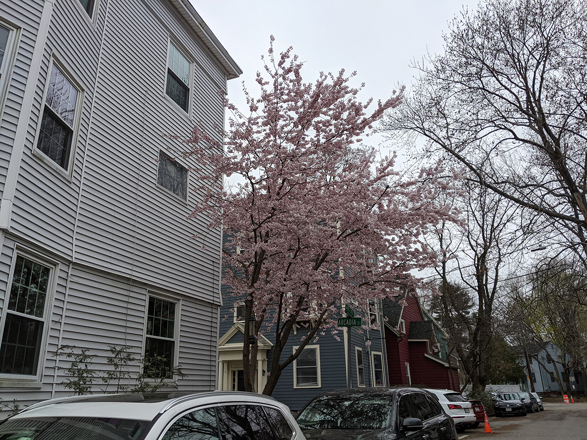 there was even more trees flowering today than there was yesterday. my bike ride to belmont was bombarded with colors. the grey and cold weather seemed to make them stand out even more. i was trying to identify all the ones i saw, but my knowledge of flowering cherries is still rudimentary at best.