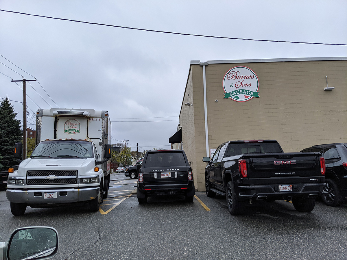 we left malden 88 by 12:40pm. we made one last stop at bianco & sons sausage. my father and i waited in the car while my mother went inside. it took her a long time because she was behind two ladies that were buying 7-8 bags of sausages.
