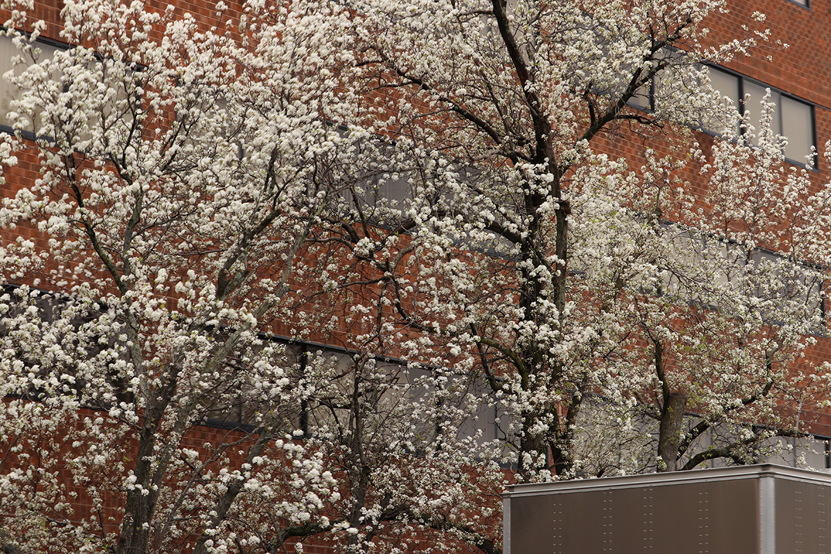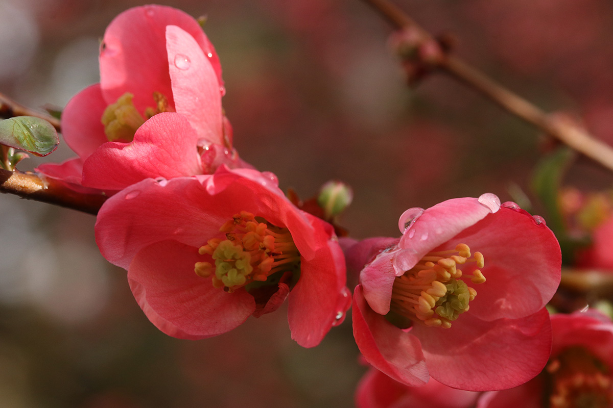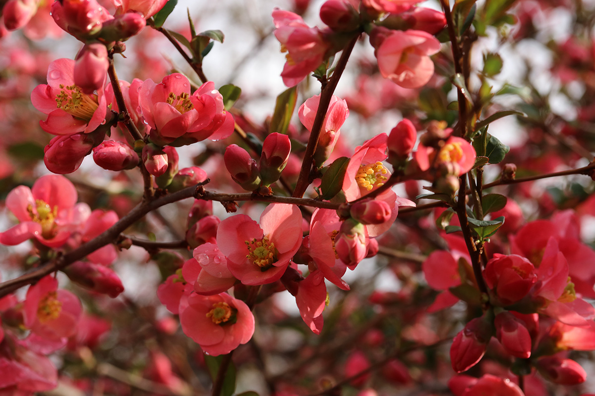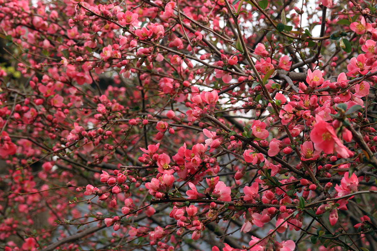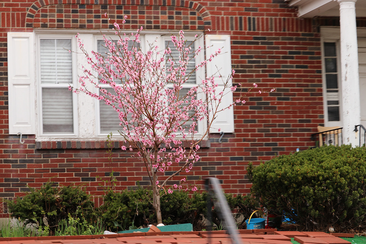 the krauter vesuvius cherry plum has started to blossom. redbud flower buds are swelling. while the kwanzan cherry still needs a few weeks for the buds to swell.