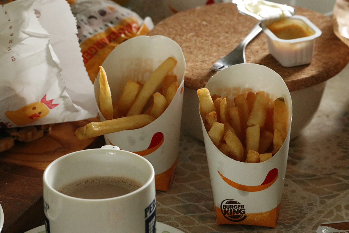 we made it back to the cafe by 1:15pm to drop off the supplies. not having lunch yet, we decided to use the burger king app on my father's phone and order something for the drive-thru. we picked it up on our to belmont and finally had lunch by 2pm.