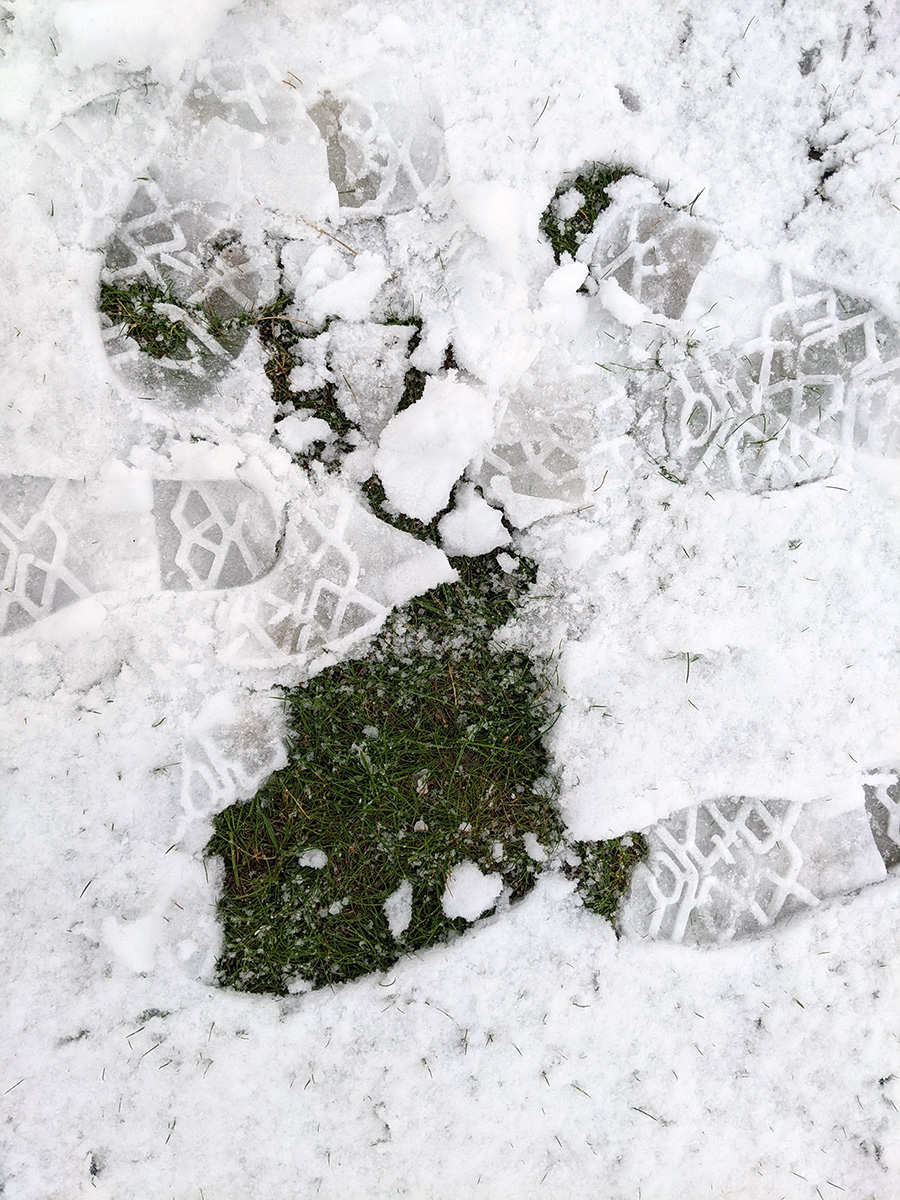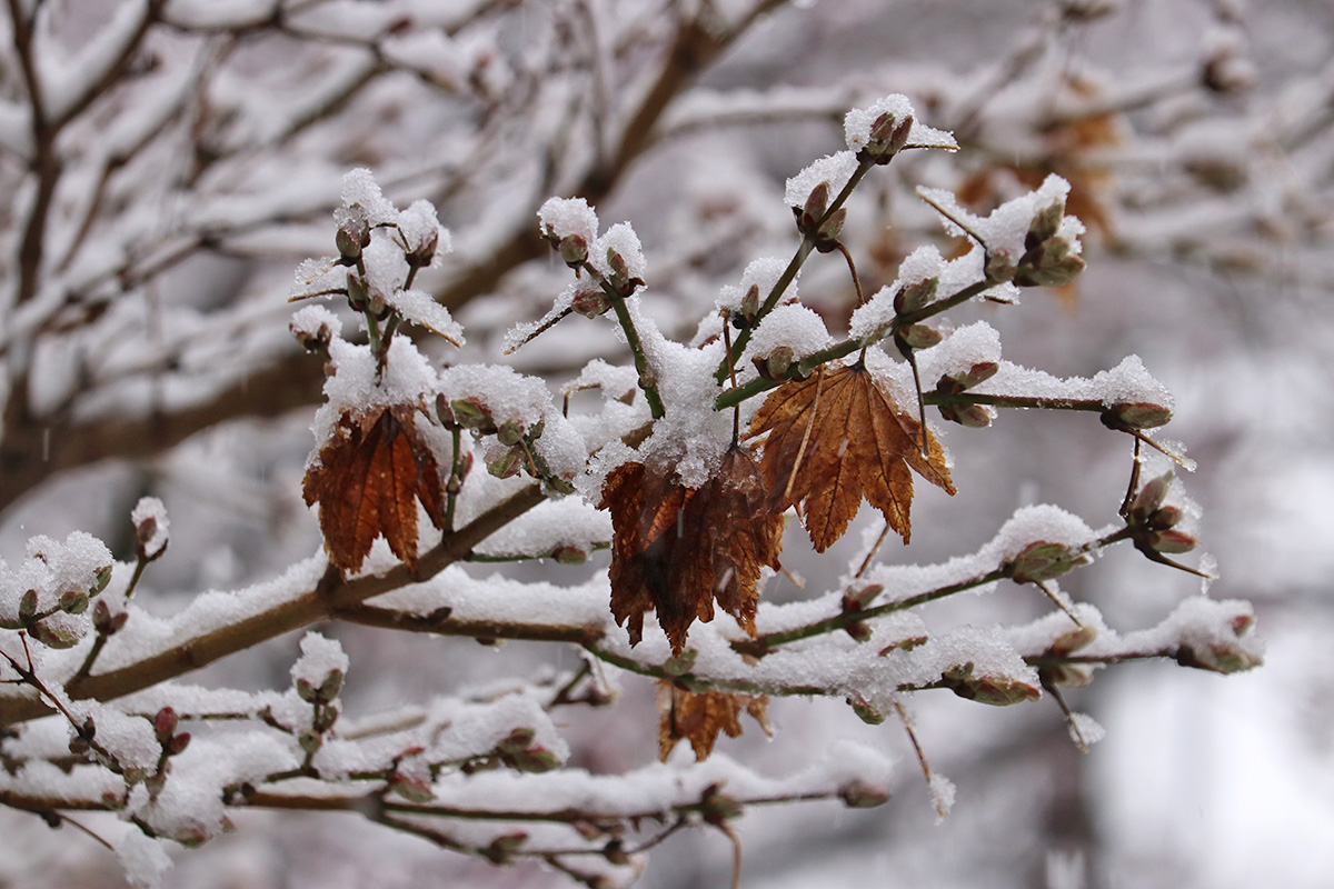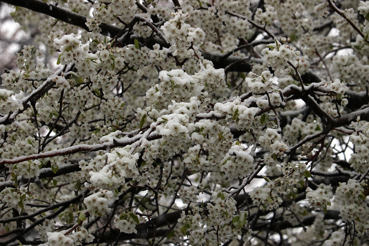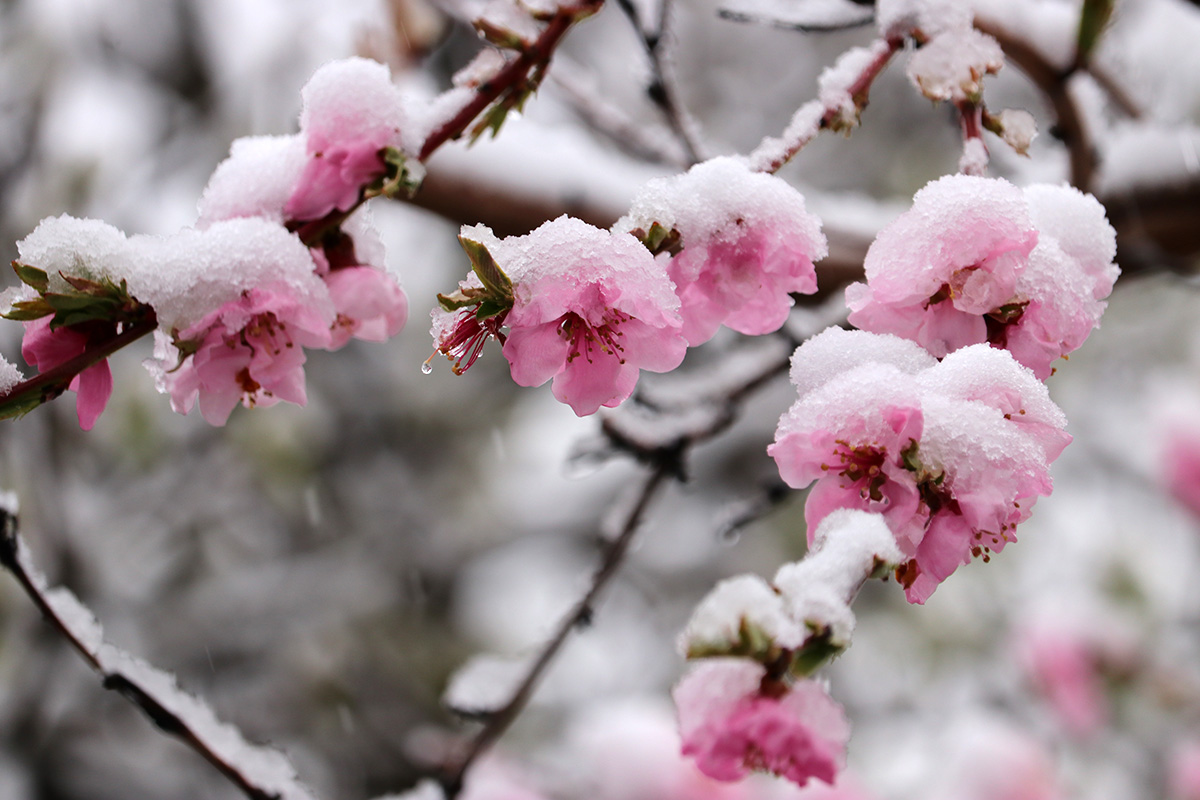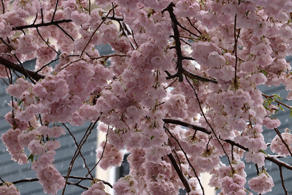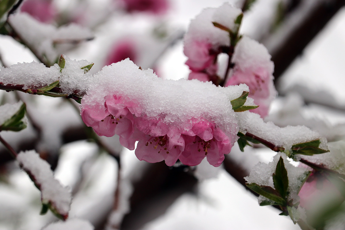 i circled the block, photographing some flowering trees, including yoshino cherries and peach blossoms. i seemed to be the first person out there since it snowed because i didn't see any other foot prints.