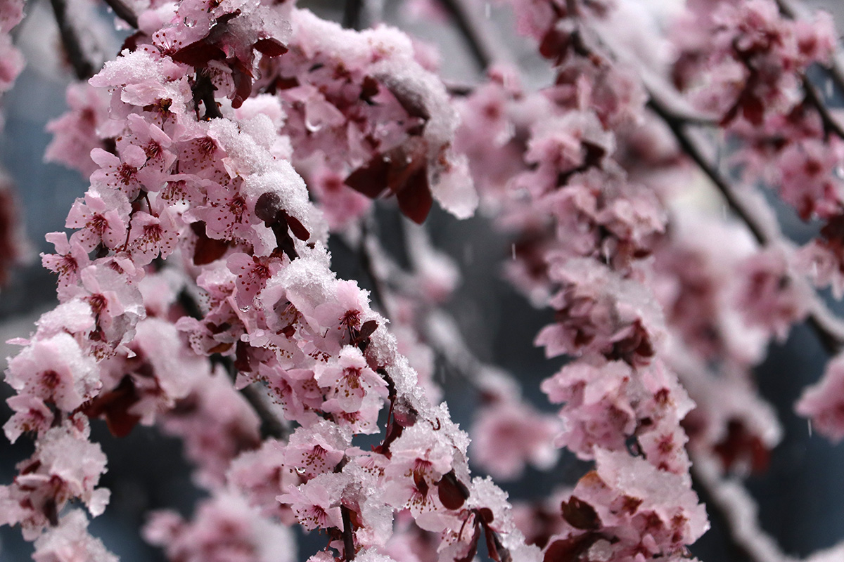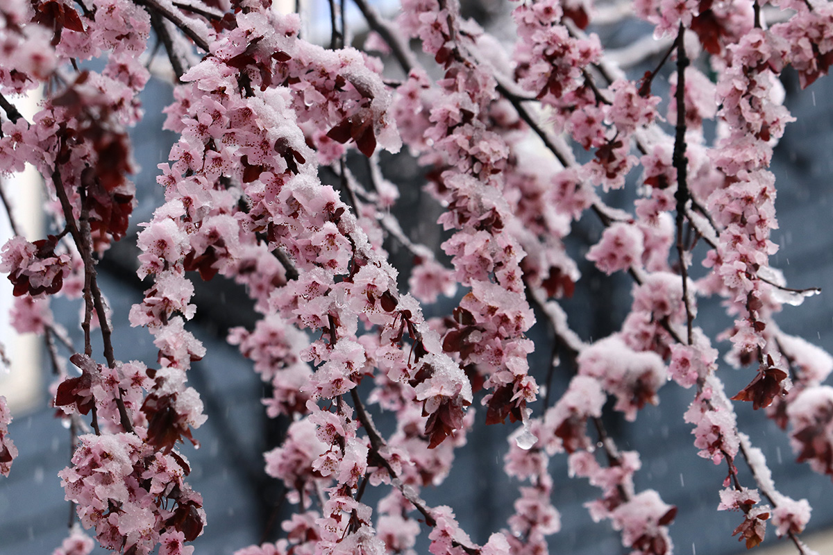 at first i was just going to take some simple snapshots from the living room, but the chance to grab some good photo opps was too great to resist. i pictured dramatic snow-covered cherry blossoms in my head.