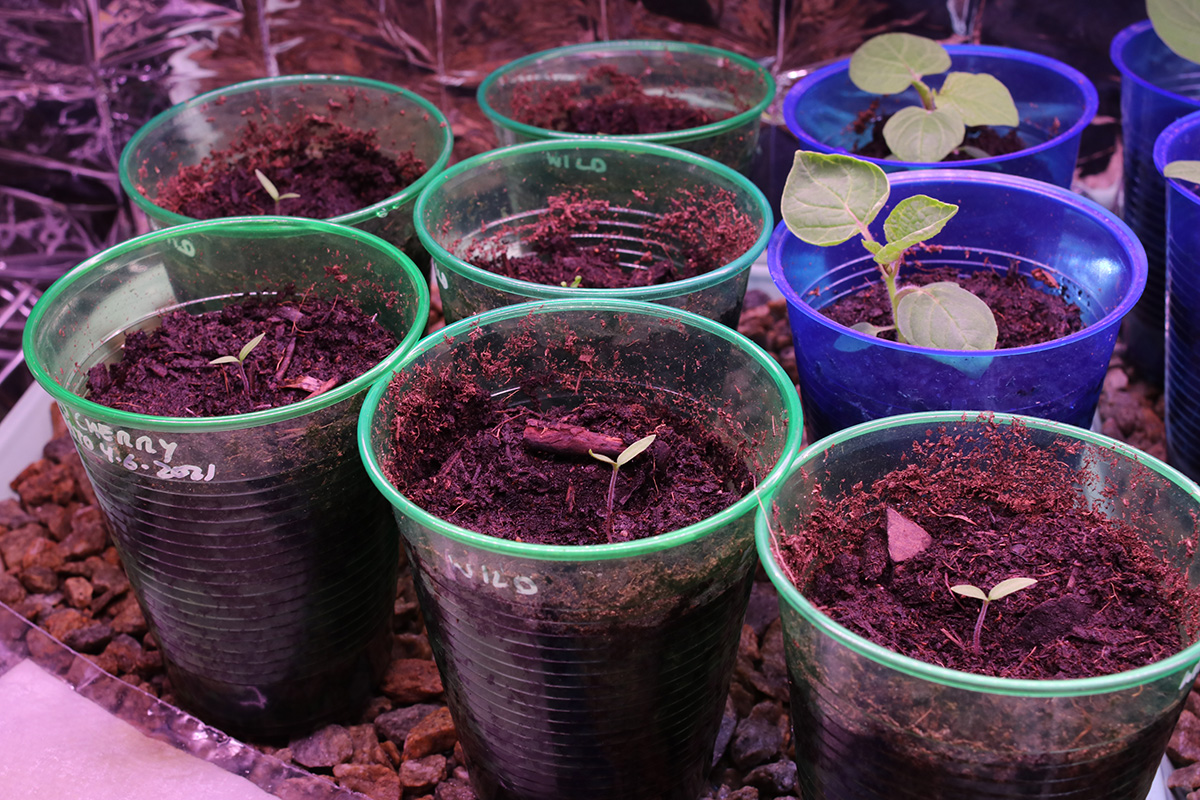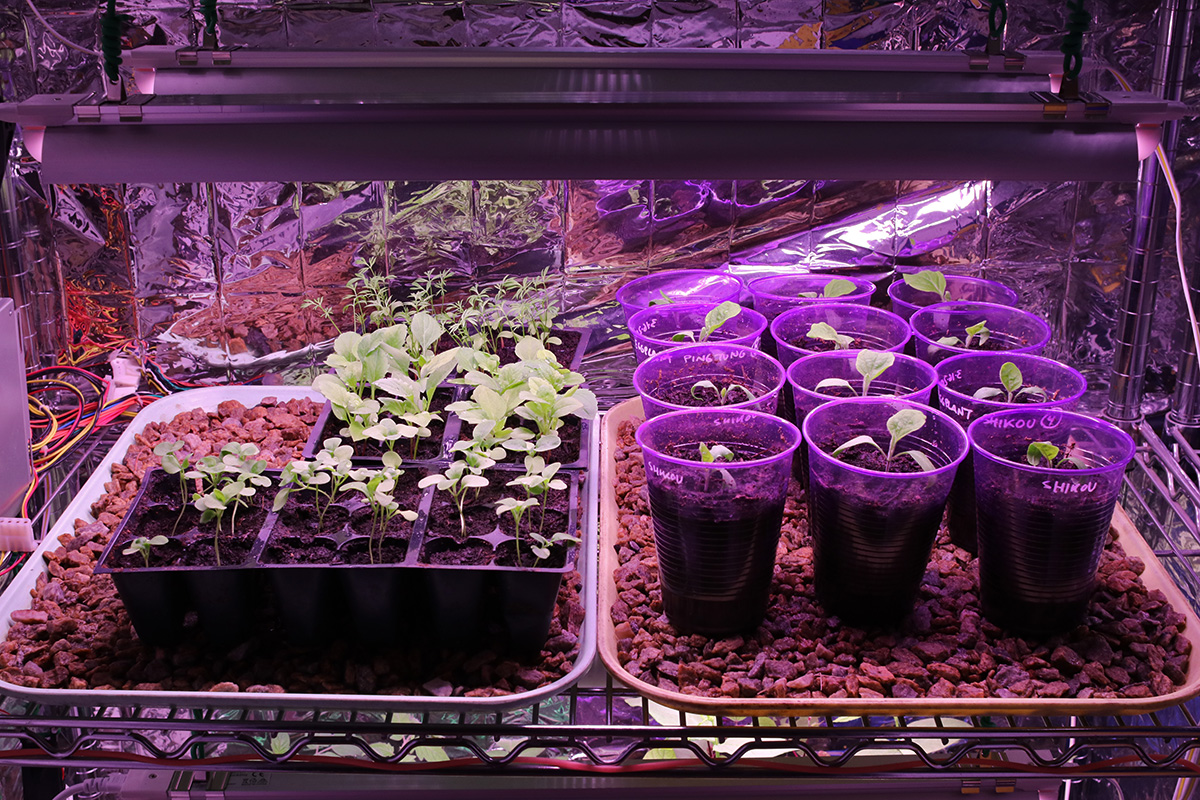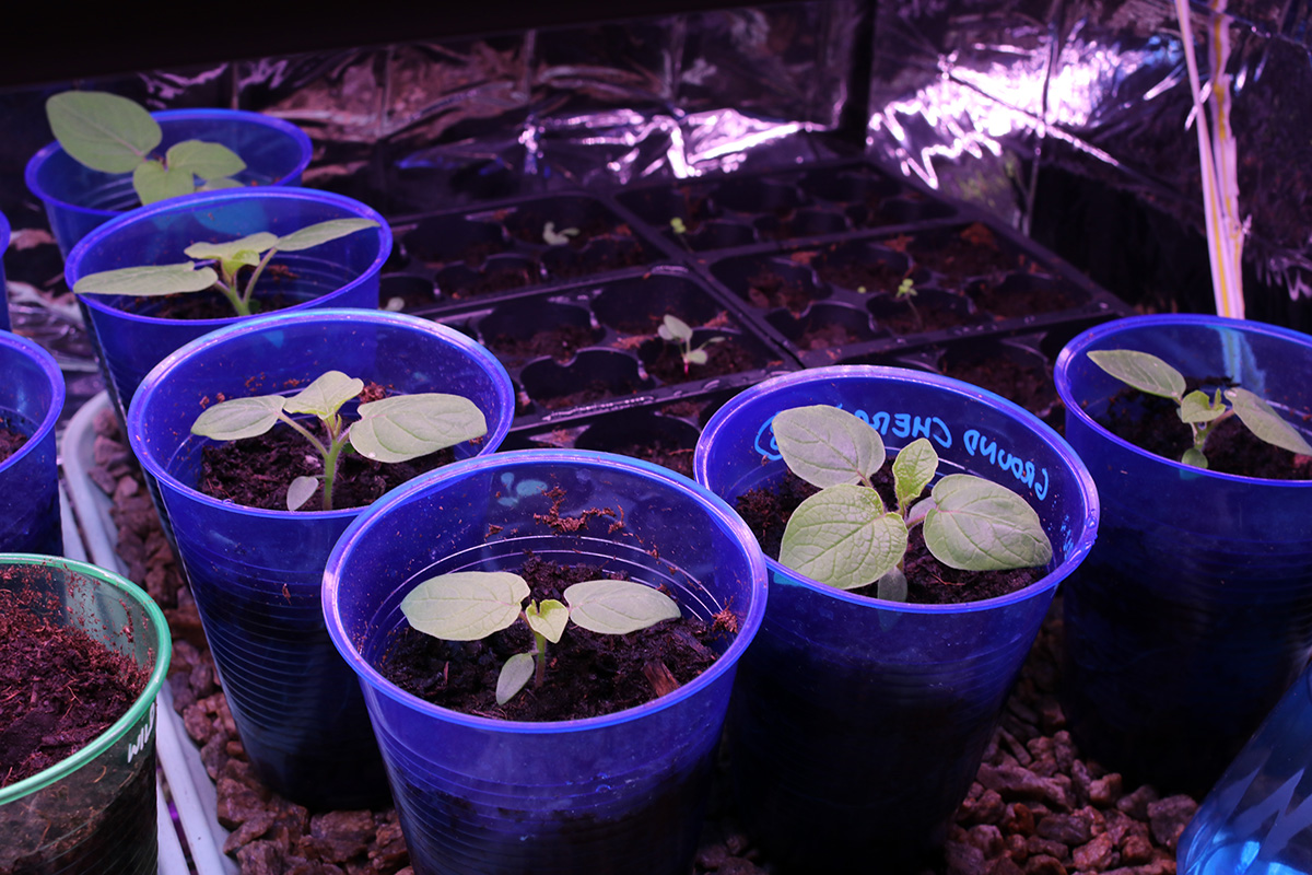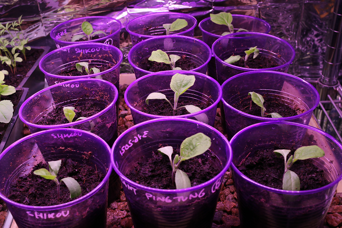 i watered my grow closet plants and did some rearranging. i swapped the location of the two middle shelf trays. the eggplants were sitting right in front of the fan and the constant cool breeze seemed to be stunting the eggplants, which prefer hot temperatures. the wild tomato seedlings are doing well, i just regret not starting them the same time as my other tomato seedlings, which already have a month headstart. my bag of pre-germinating seedlings seemed to have all sprouted but i don't have anymore room for them.