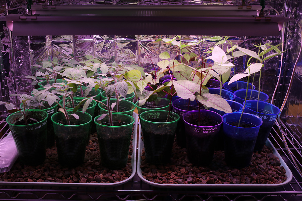 my father was out in the backyard refilling the hyacinth bean pots with more soil. inspecting our orchids, he spotted some mealybugs hiding in one of the flowers. we moved the plant into the bathtub where i sprayed it with insecticidal soap. later my father watered the orchids. i didn't check our grow room plants, i'll do that tomorrow. if the weather's warm enough tomorrow, i'll move them out again for another round of neem oil treatment.