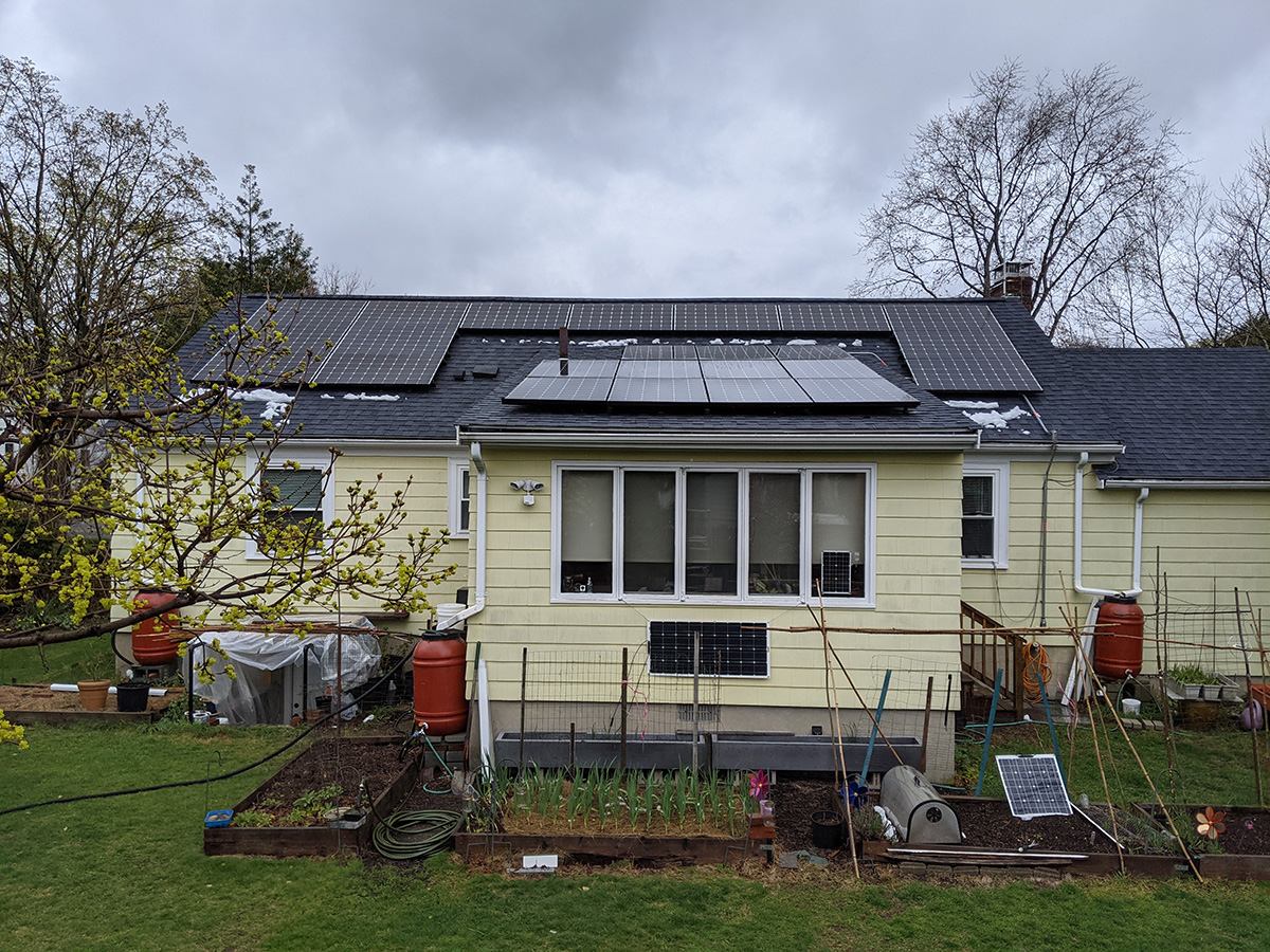 first thing i did when i got to my parents' place was to make a beeline out to the backyard to check on the status of the solar panels. judging from the disjointed production, i had a feeling there was some snow on the sunroom panels. i was surprised to see the panels all perfectly clear, no obstructions.