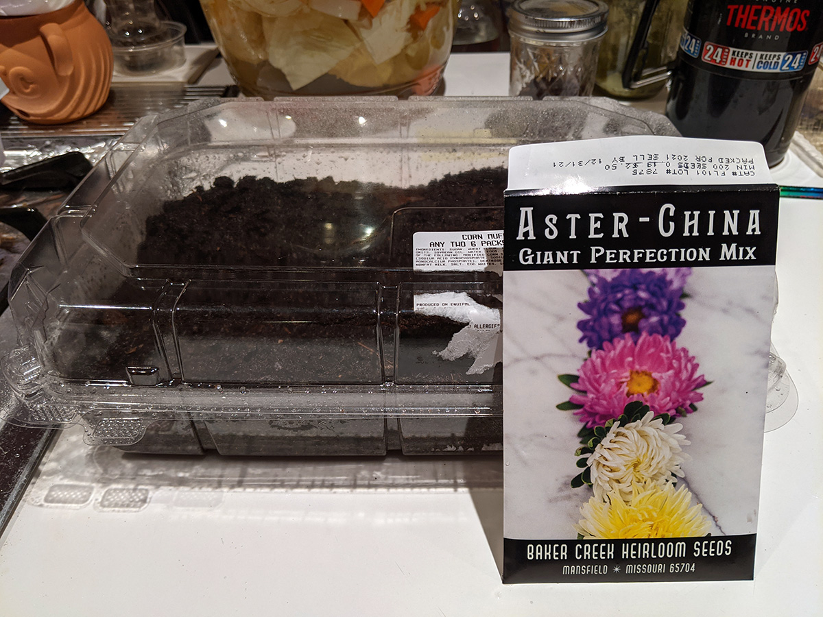 my father gave me a ride back to cambridge. when i got back, i handed him the pre-germinated bag of wild tomato seedlings, so he can sprout some in belmont. i thought about transplanting some flower seedlings but then decided it'd be easier if i planted them directly into the garden. i did however plant some chinese aster seeds in a used muffin container. most of my flower seedlings are frost hardy, so i should be able to plant them now without any problems. after that i'll start a fresh batch of seeds.