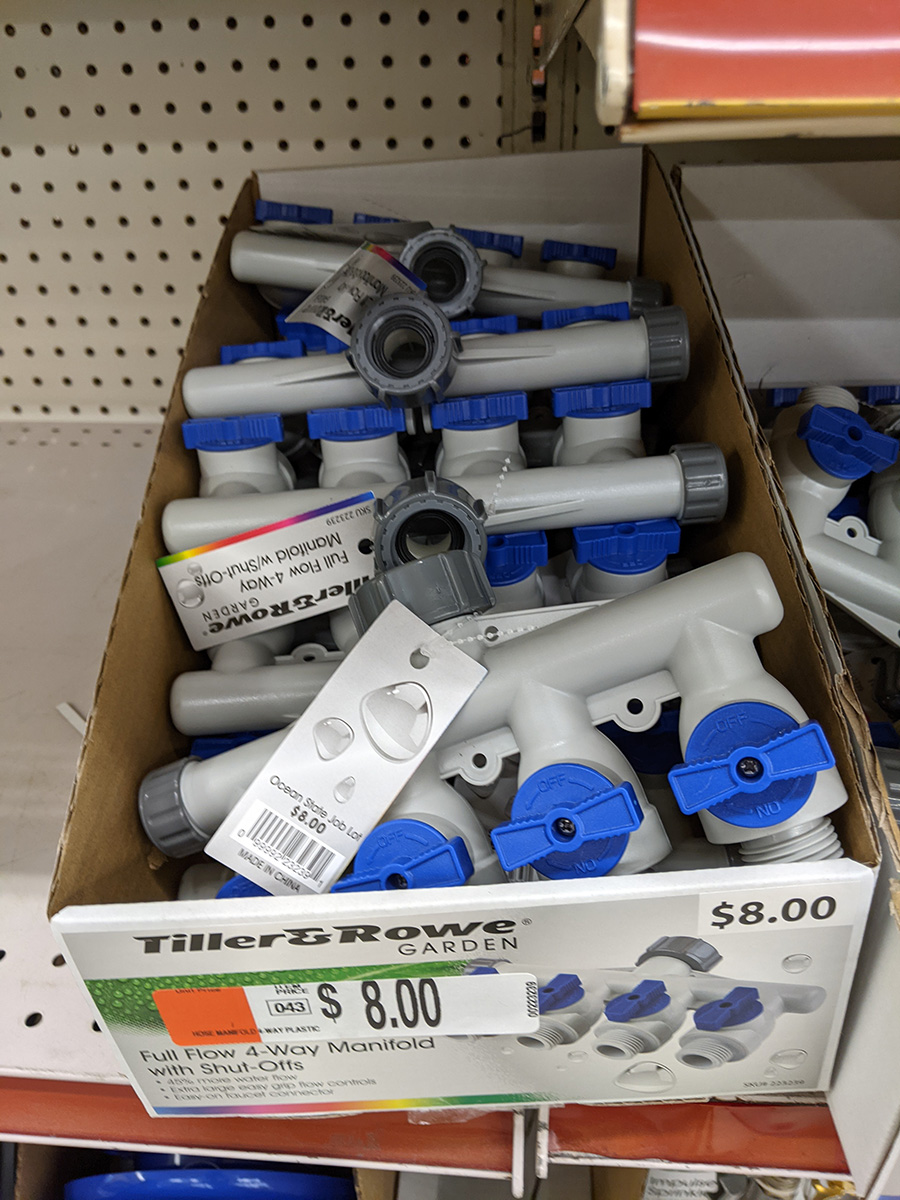afterwards we went to the bedford OSJL because my mother wanted to get some yarn and knitting needles. she asked one of the workers, they said they were all sold out. my father left with more stuff than she did, various garden hose accessories, 12" pots, and gardening spikes. they had 4-way manifolds for $8 in stock - the same ones on the OSJL website that they said were all sold - the same one i paid $12 for from amazon. instead of going home, we drove 20 minutes to the waltham OSJL. they did have yarn but not the needle sizes my mother wanted but she bought a few anyway.