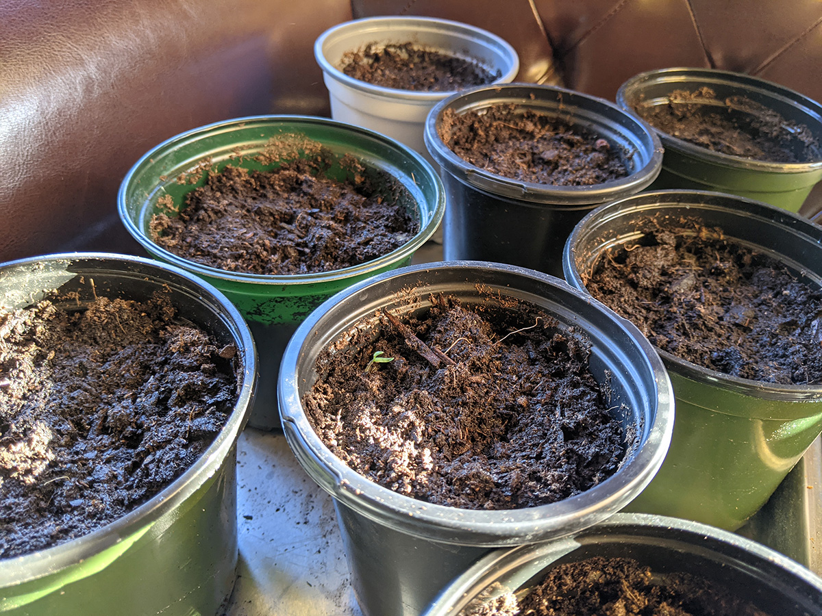 my father and i dug up the goldenrods and some ornamental grass from the south perennial bed. there was a lot of goldenrods, i'd almost consider it a weed in the garden. we saved some, replanting them in a large unused pot we had in the backyard. for soil we dug around the bamboo trenches. as for the ornamental grass - which also grows fast enough to be a weed - we're just going to throw out once we shake off most of the dirt. i did accidentally uproot a sensitive fern which i located to the eastern shady garden plot. my father showed me the pre-germinated tomato seedlings he planted yesterday, already one seedling had emerged from the soil.