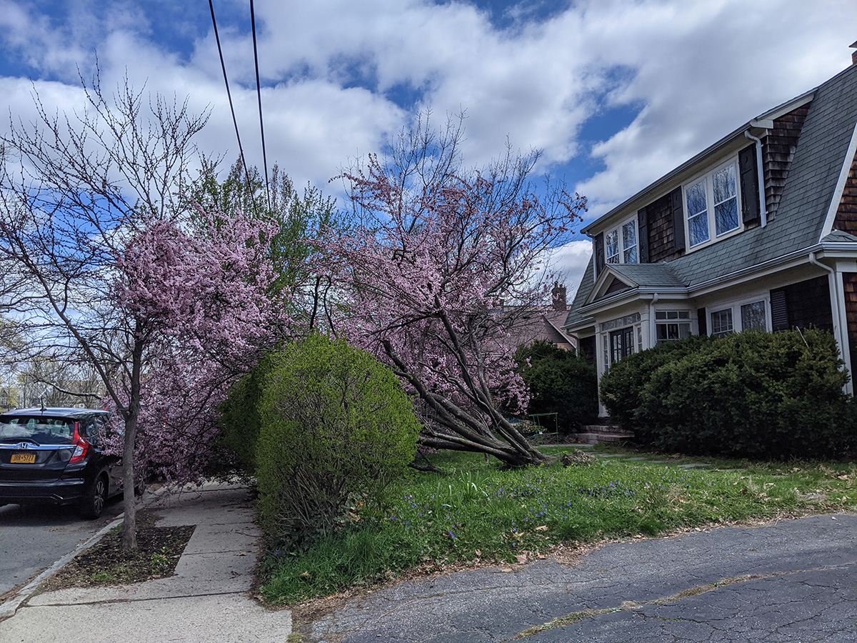 cherry plum tree on huron avenue. i noticed a wheelchair in the driveway, the homeowners are probably in no condition to do anything about the tree, maybe they're waiting until the weekdays to call a tree pruner to take care of it.