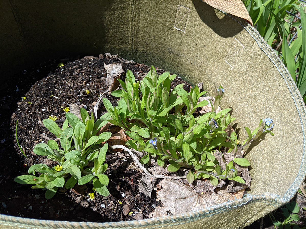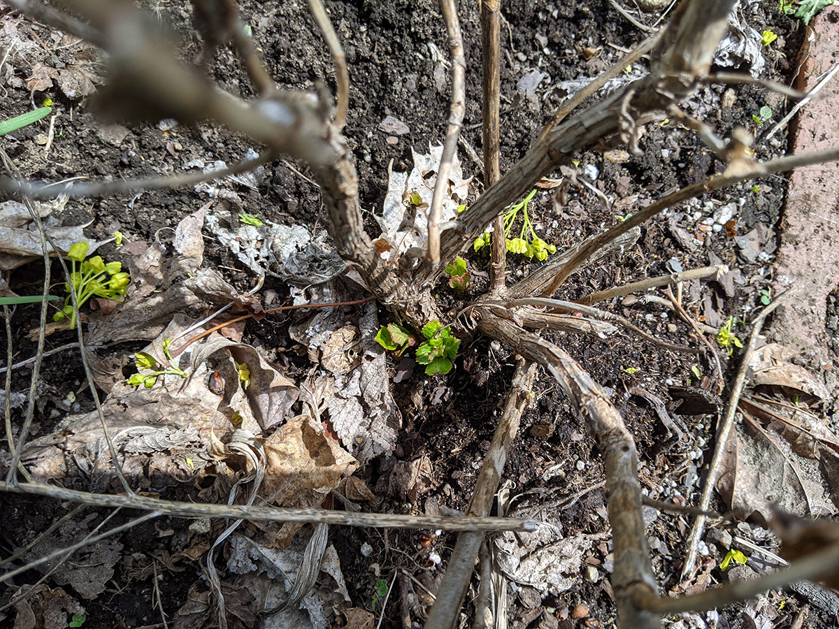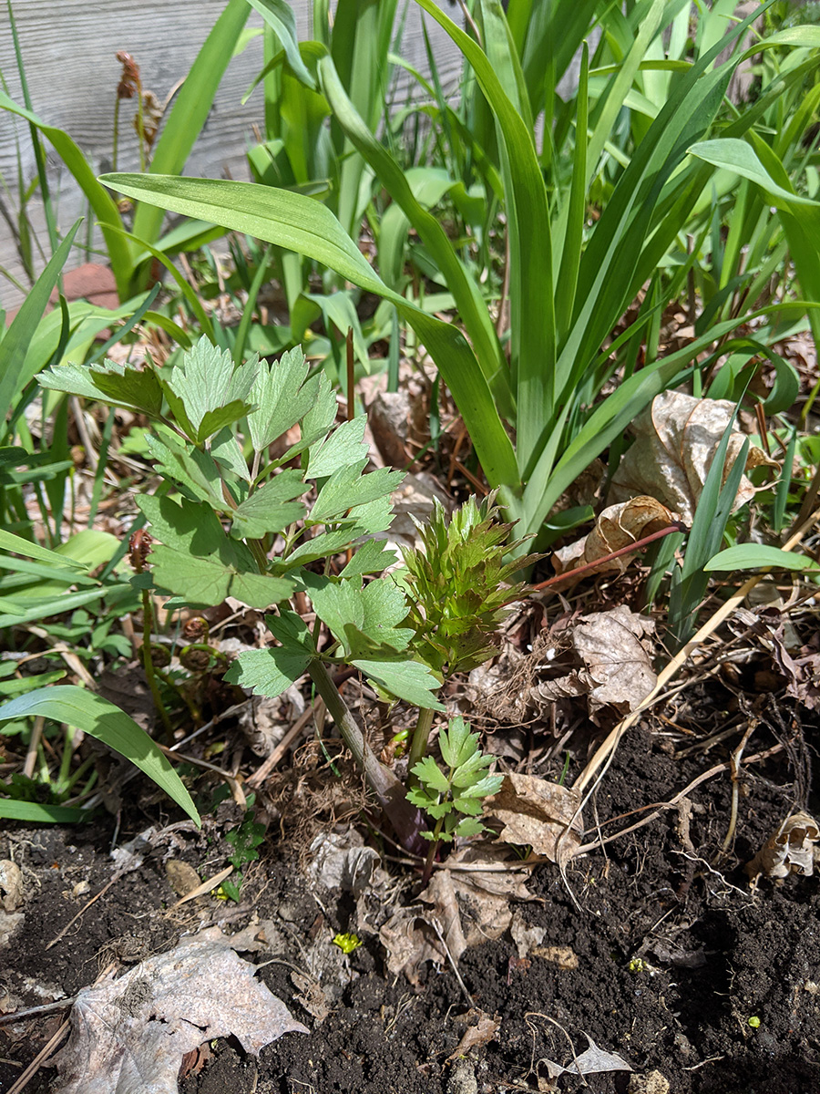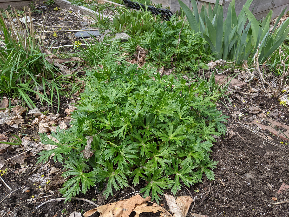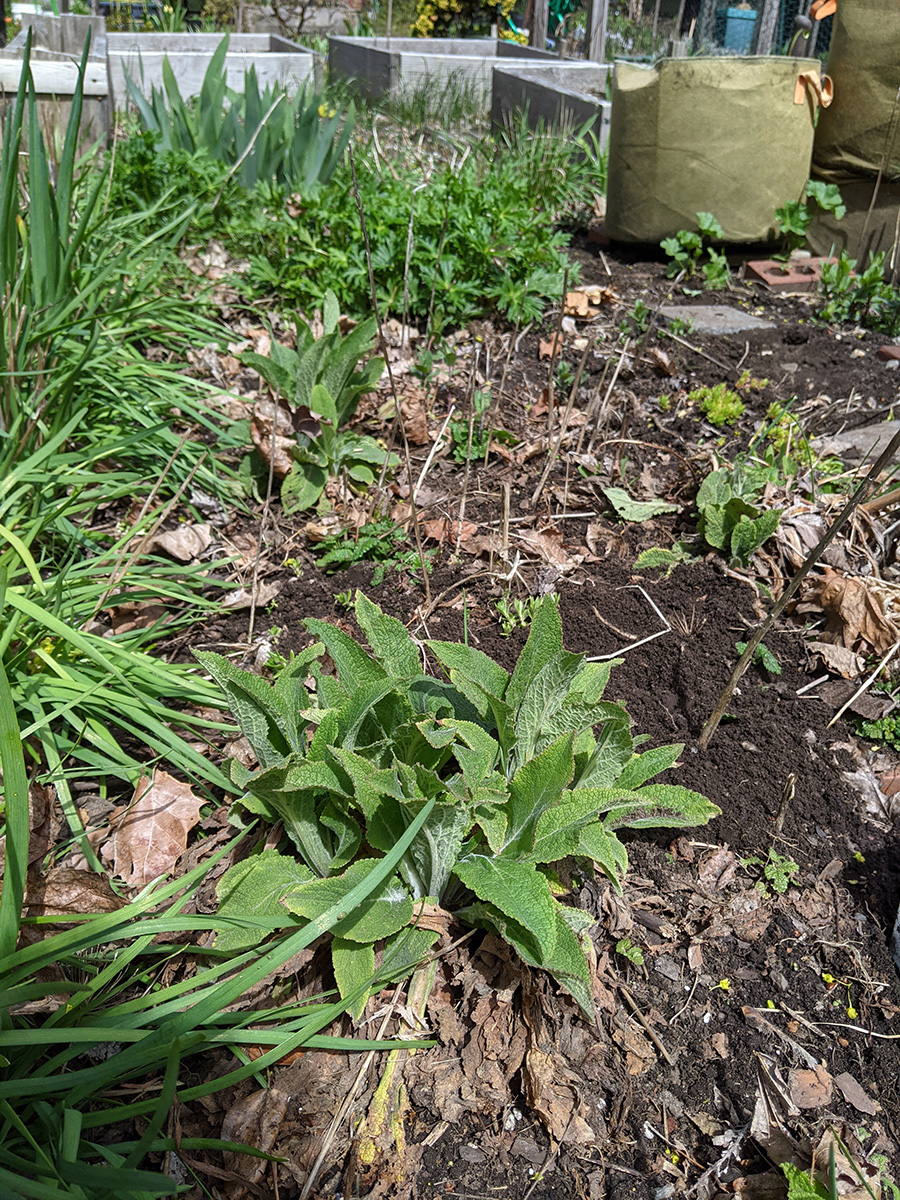i also did some weeding, pulling up mainly unwanted grass and buttercups. my garden monkshood seem to be thriving, compared to the one at my parents' place which only has a few leaves. another surprise was one of the hydrangeas i planted on the northwestern corner of my plot has sprouted leaves. i'm not going to nurture it too much, it's a leftover plant, but if it managed to survive this season, then it deserves a place in the garden. it was nearly 1pm before i finally returned home. despite the low temperature, working in the full sun seemed to have warmed me up and i even took off my jacket.