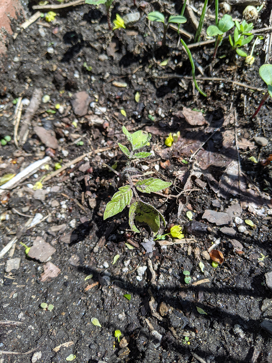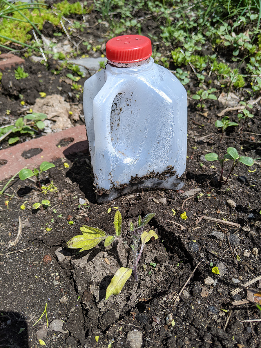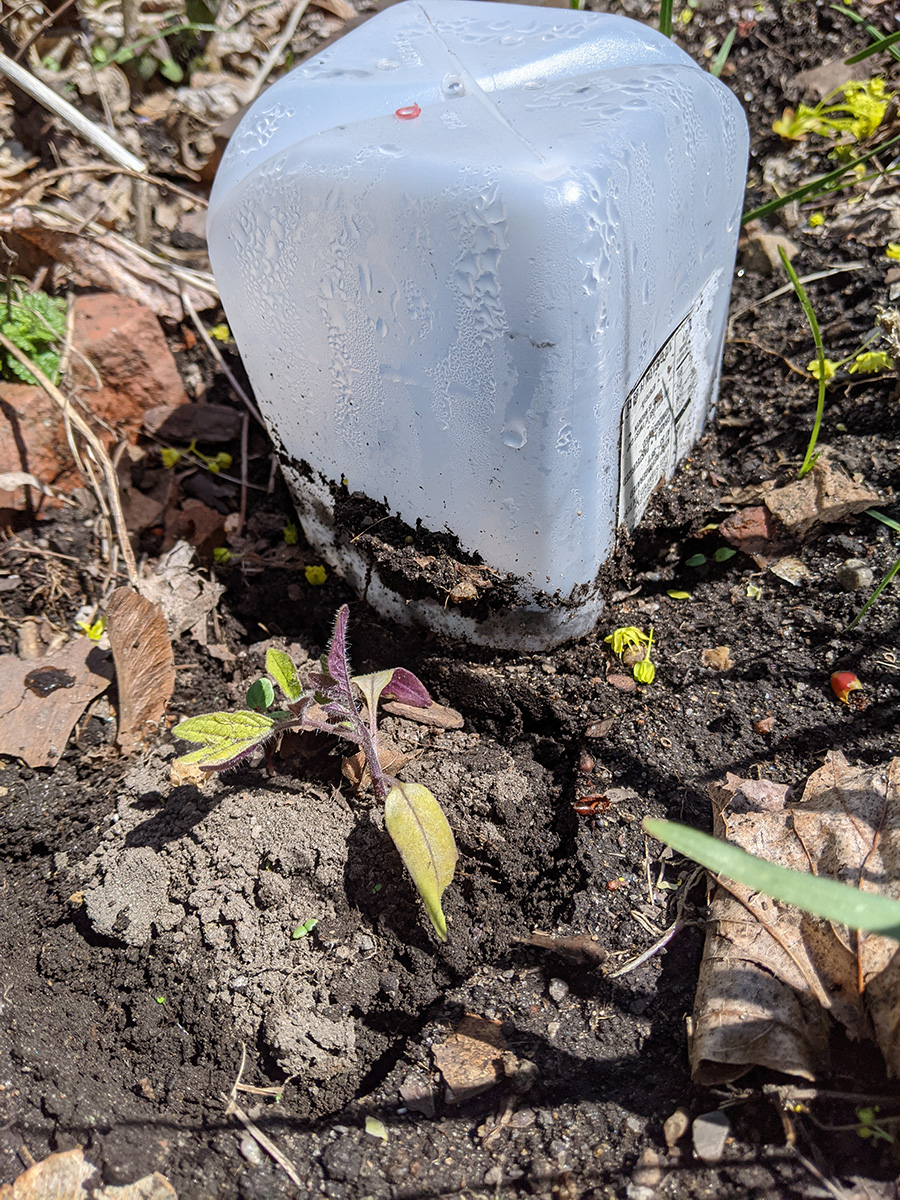the first thing i checked when i got to my garden were the tomato seedlings i planted more than 2 weeks ago. i was sure they were dead but was surprised to find the two seedlings under milk cartons were quite alive.