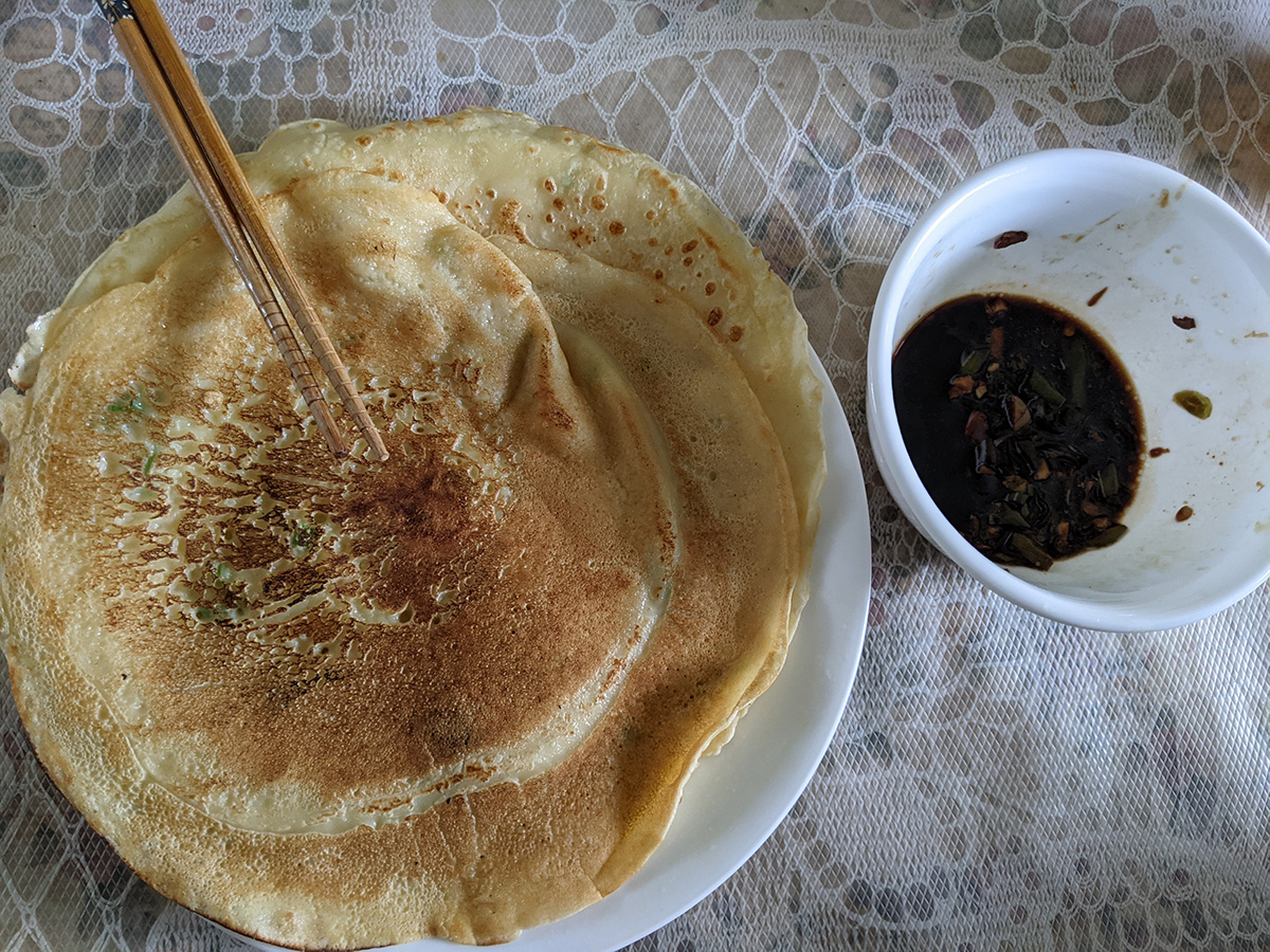 i had some savory pancakes for lunch dipped in a spicy soy sauce. my father had a bunch of wild tomato seedlings on the dining table. i thought he was just moving some seedlings from the muffin starter tray into pots, but instead of thinning them out, he was still transplanting them in clumps. later he'd snip off the extra seedlings with scissors, until i told him he could just easily pull out the unwanted seedlings. even with the extra pots that he found and made, there was still way too many seedlings. he made the rookie mistake of planting way too many seeds, and now faced the difficult task of thinning them out and realizing most of them will have to be thrown out.
