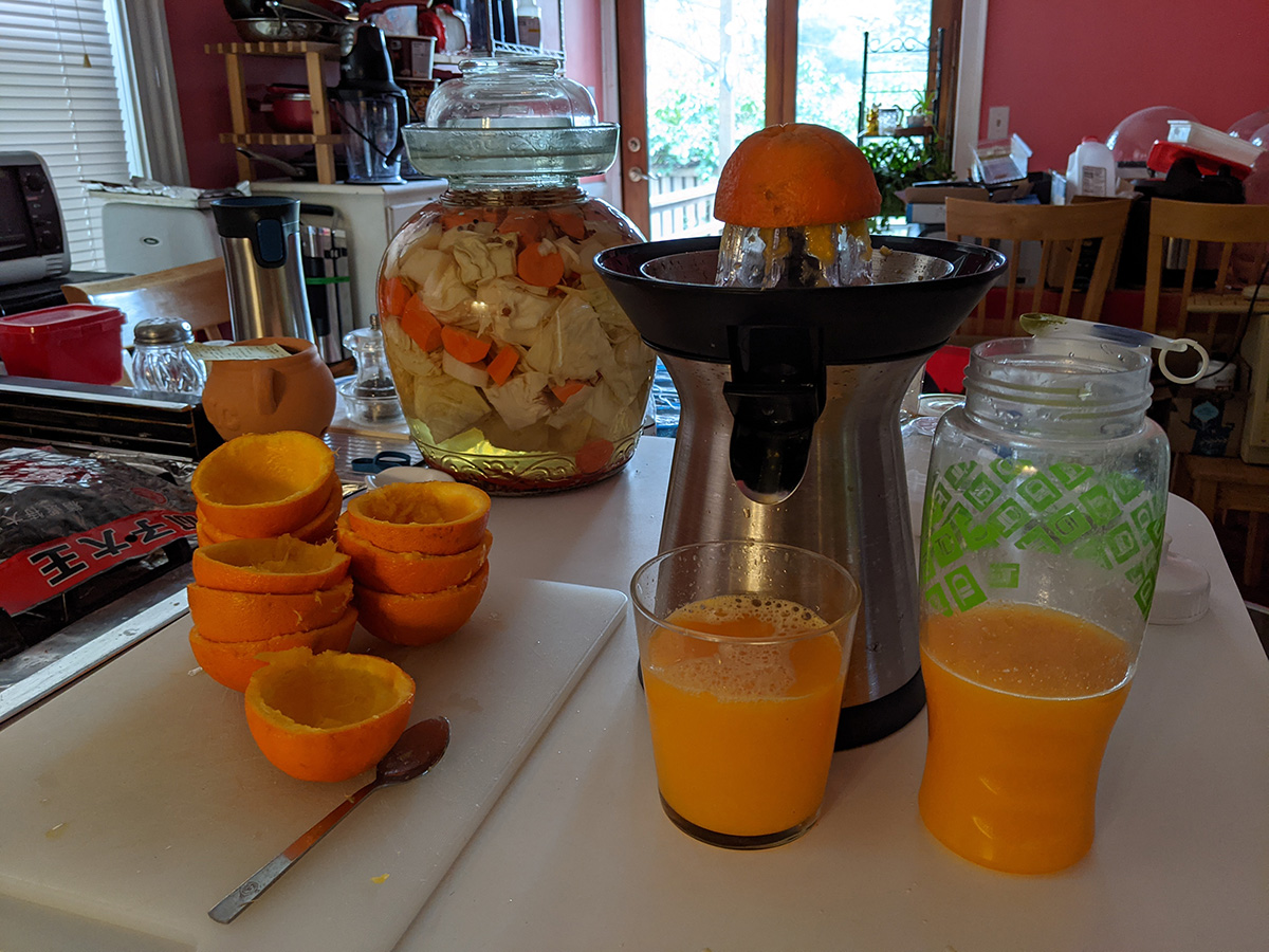 my father was coming to pick me up because it was raining. i had about 30 minutes to pack up my overgrowth bean plants so they could be moved to belmont and transplanted in the backyard and then squeeze some fresh orange juice. while i was in my grow closet, i noticed some dry gravel trays and parched pots so i had to water them first. finally i got around to squeeze the oranges. normally it'd take me 20 minutes but i managed to do it in record time, 8 minutes to squeeze a dozen halves.