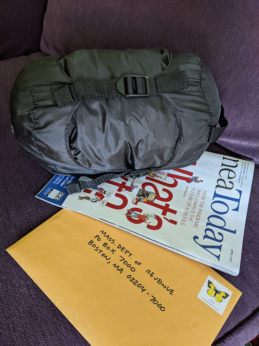 by the afternoon the sky finally cleared up and the sun appeared. the temperature skyrocketed as well, shot up to 68°F. i went out to run some errands: my my sister's godmother's state tax returns, tag a pokestop, drop off a mismailed magazine, and put the rain cover on my motorcycle.