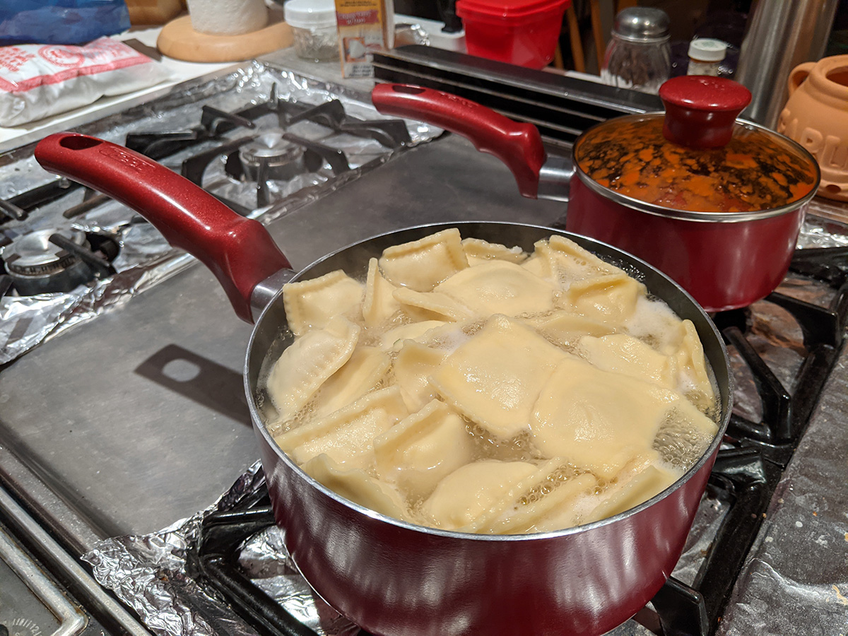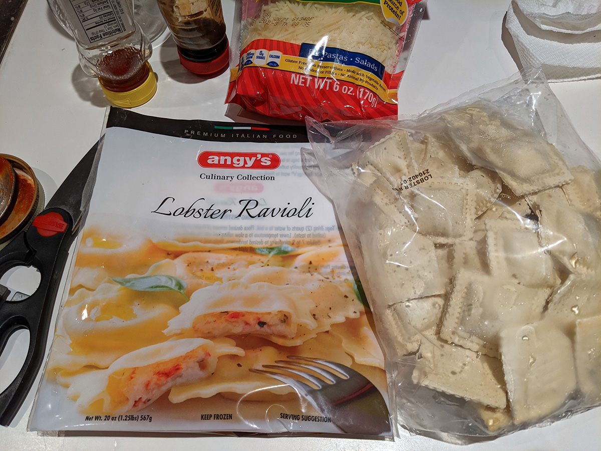 for dinner i cooked up a package of lobster ravioli i bought last week. at 20 oz. the package said it was 6 servings worth but i ate the whole thing, serving sizes be damned. they were okay, they actually had real lobster meat when i bit into them, but it's not like eating a lobster roll or anything as decadent as that. to be honest, i couldn't really tell the difference between regular raviolis and lobster raviolis. maybe if i used a lighter sauce that didn't obscure the lobster taste, or i added the raviolis to a soup like wontons.