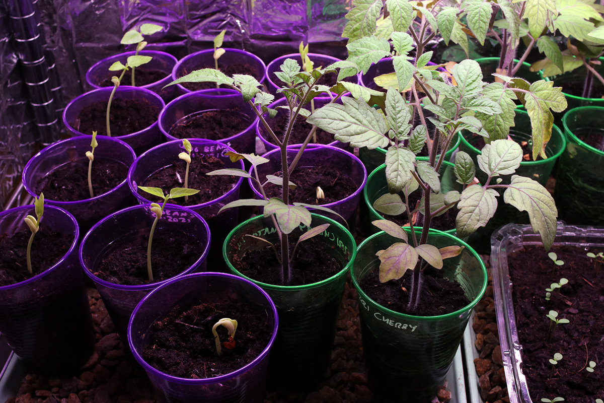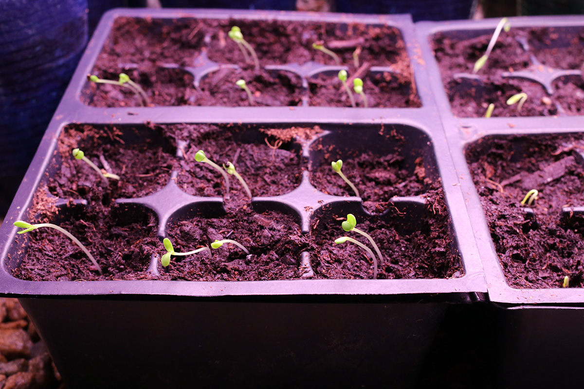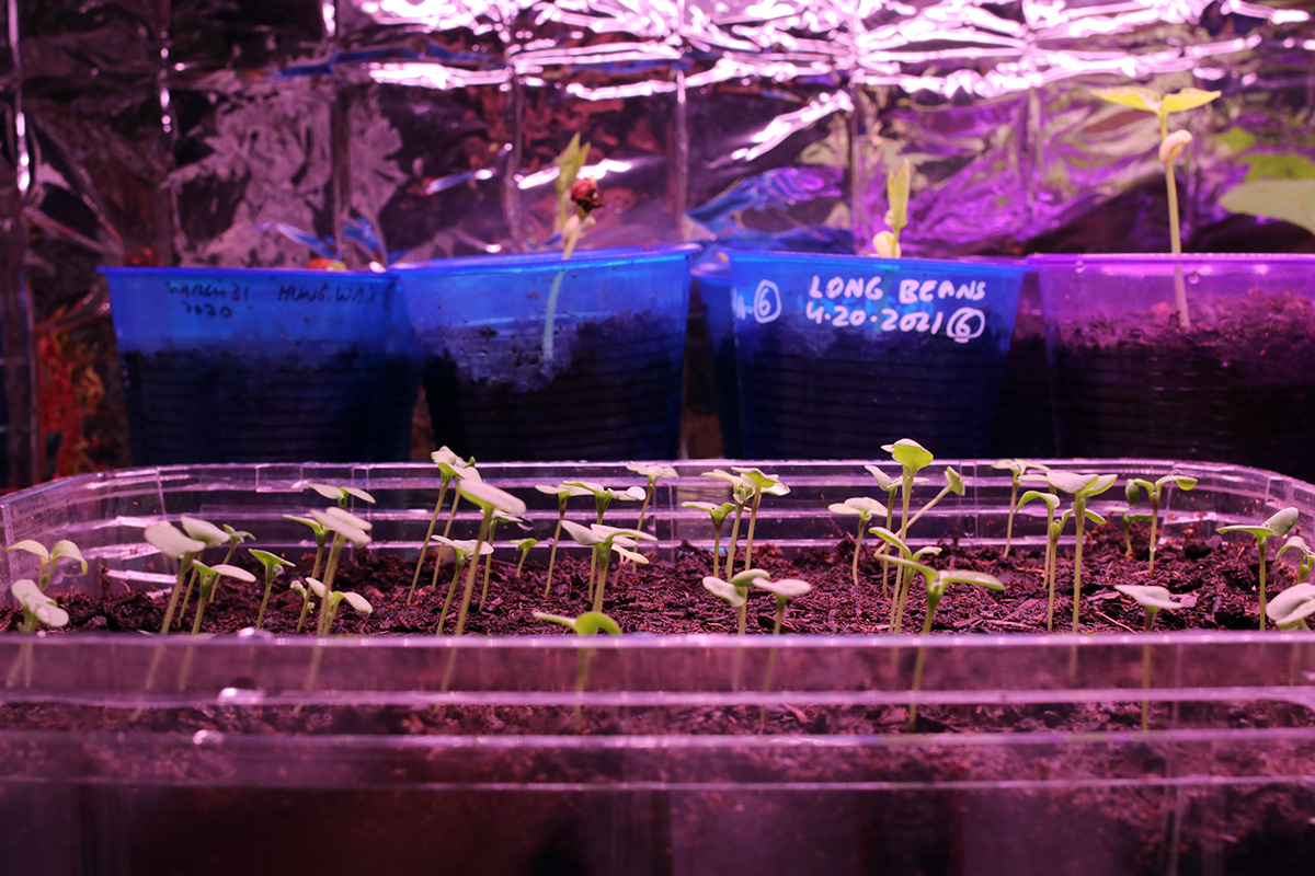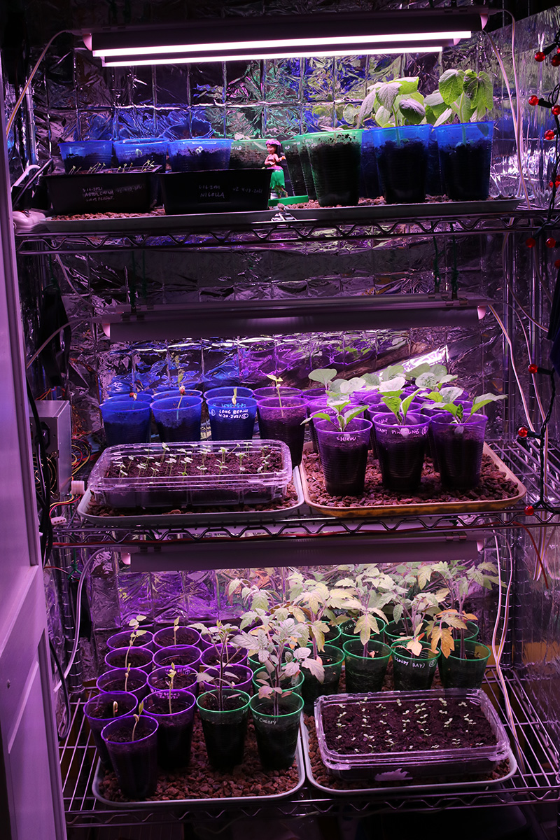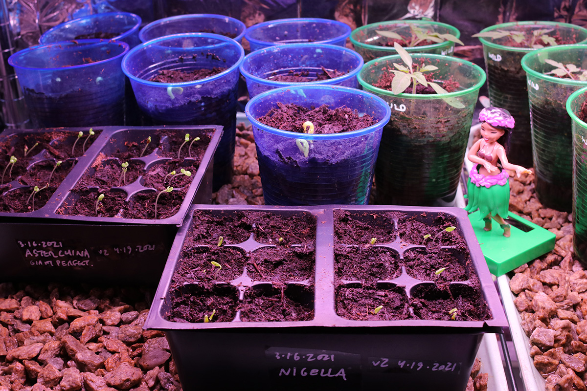 i also spent some time tending to the grow closet, watering all the plants and shuffling them around. i noticed last night that some of the long beans had sprouted. i moved them into the grow closet. i also moved out the rudbeckia and snowy spires, i'm going to grow them on the backyard deck so i can have more room. only a small handful germinated, these seeds were difficult to sprout. while moving the plants i also noticed my 2nd batch seed starter trays of nigella and asters have also sprouted; those i moved into the grow closet for the time being. the ground cherries seem to be developing some flower buds, which is quite early; i prefer they focus on making more leaves instead. i'm trying to decide if i should pinch them off.