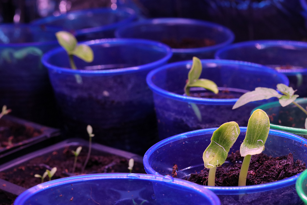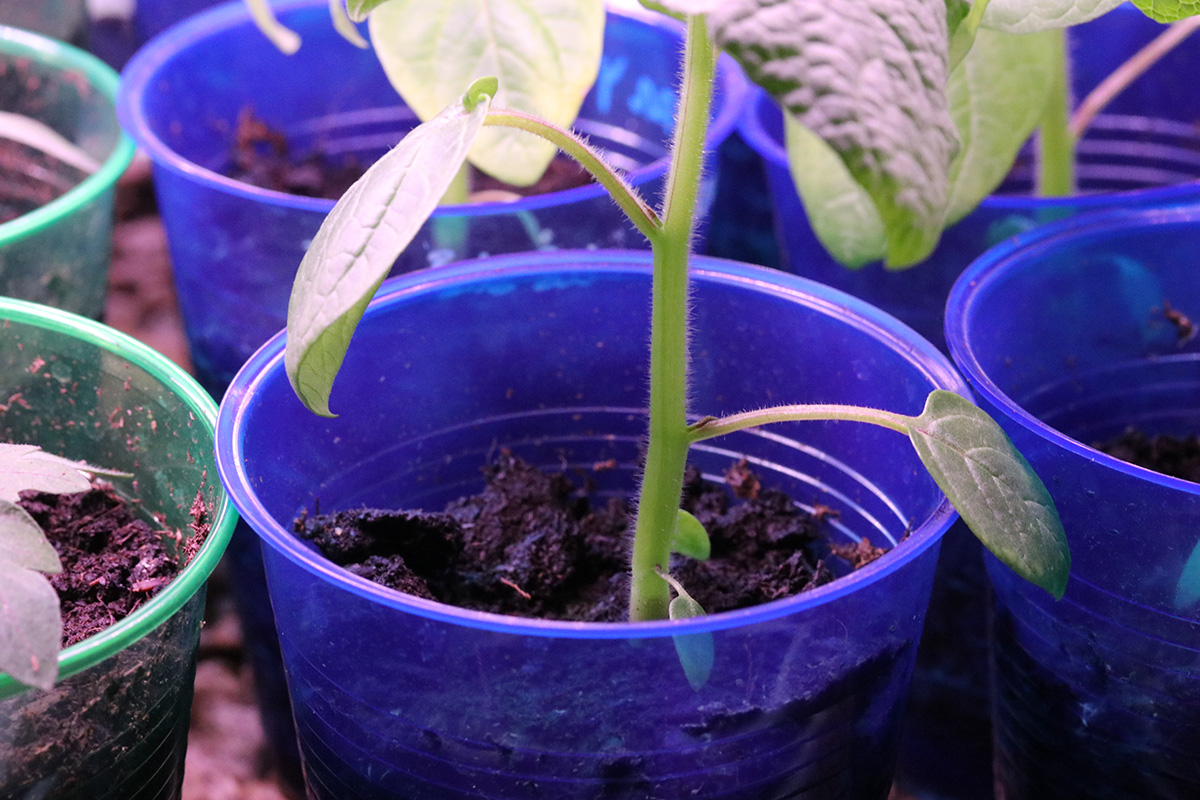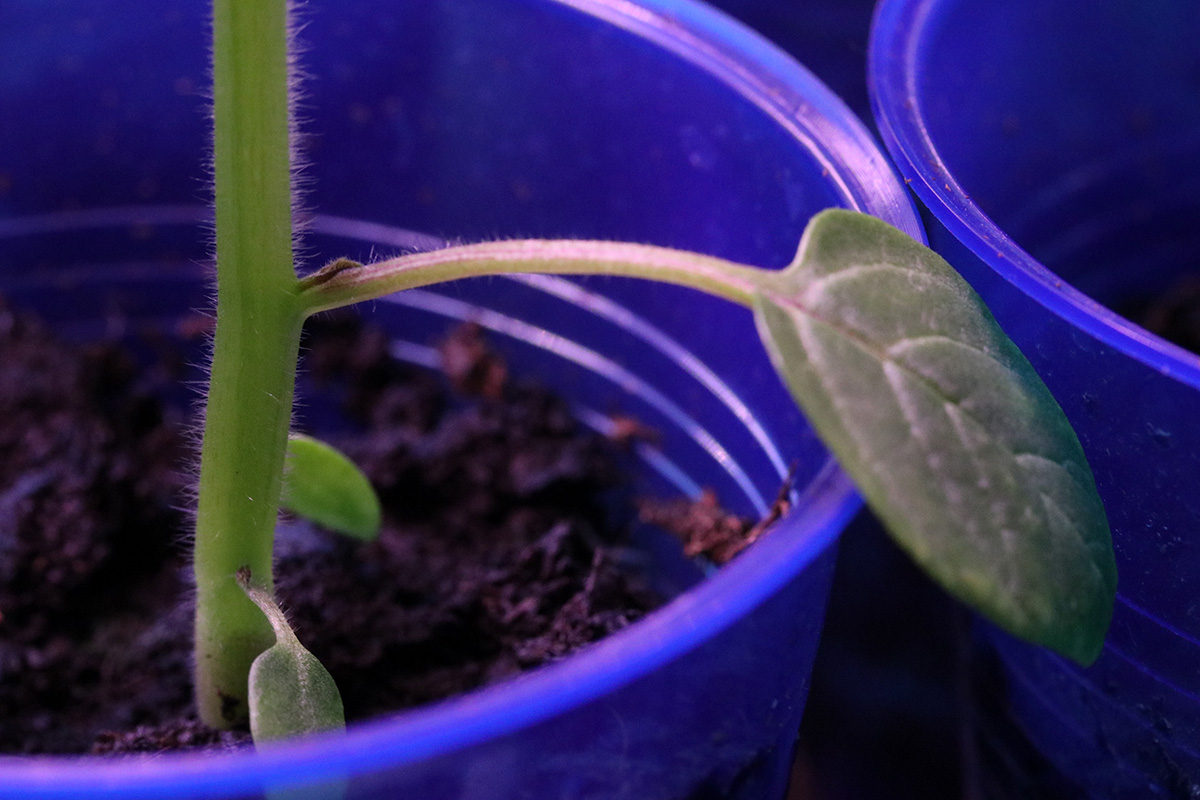 3 more of the potted squash have germinated, so now all 10 pots have at least one seedling, some two. the seedlings feel very tough, not sure if they're naturally hard, or is it because i'm exposing them to a fan. if i had more dirt i'd try to salvage a few of the extra seedlings. i'm still waiting for the bitter melons to emerge. i spoke with maureen, she said her father and a neighbor both noticed bitter melons are slow to germinate this season. she didn't have any problems germinating hers because she used a heat pad. the ground cherries are also doing well, and very hardy too. i noticed today that they have an alternating leaf arrangement.