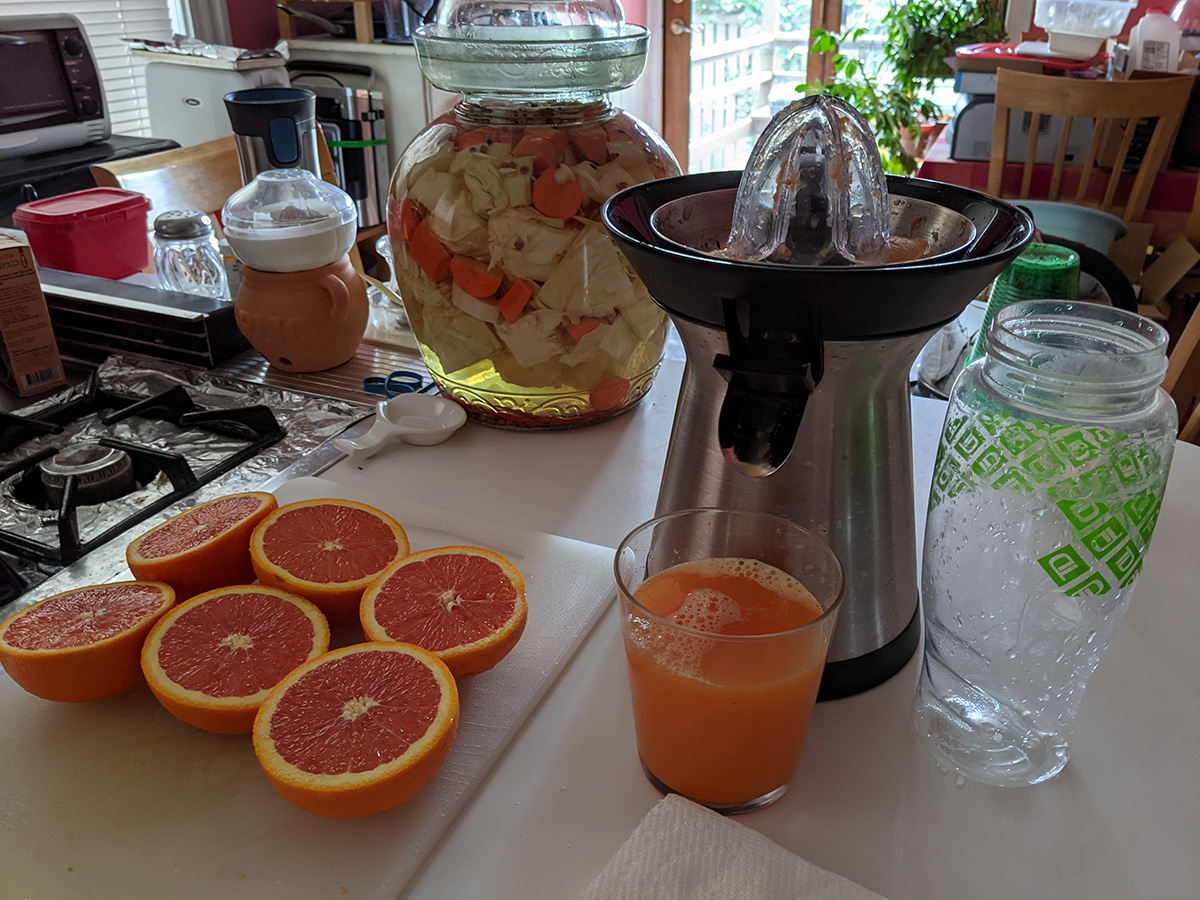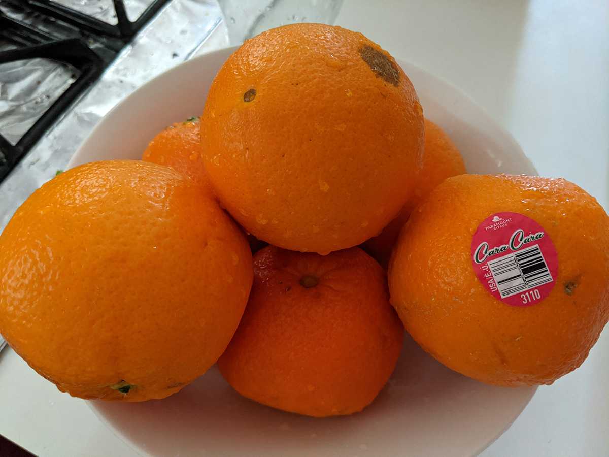 i juiced the last of my oranges this morning. i came across one that had a sticker, found out these were cara cara oranges, that's why they had a characteristic red flesh. makes me want to go back to haymarket next friday and get some more, since usually you'd pay extra for these compared to normal navel oranges. it's almost a waste to juice them, since the pulp probably contains a lot of additional flavors.