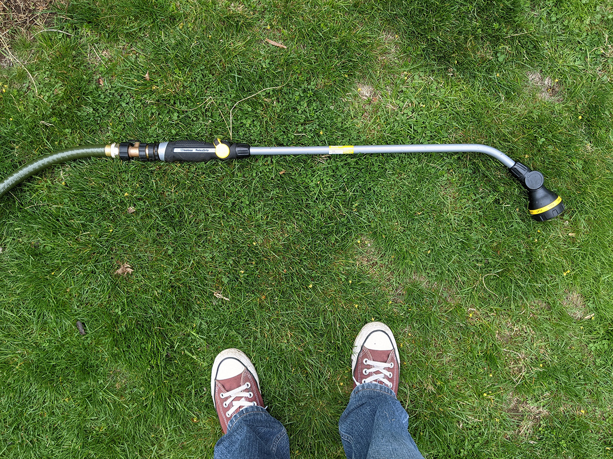 the 33" 8-pattern melnor watering wand ($10) was a pleasure to use. we used to have a watering wand but it broke. the replacement wand we later bought from OSJL also broke after one season; we still use it (for the front lawn) but the shutoff valve no longer works (we did attach a hose shutdown valve at the base as a hack-fix). hopefully this melnor will last a bit longer. i like how the spray head can be adjusted to various angles. the wand gives us better reach when watering.