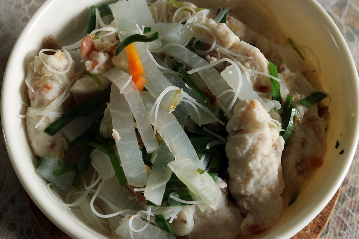 i had some leftover squid nuggets for lunch, mixed with some rice noodles. i then spent most of the day working in the backyard.