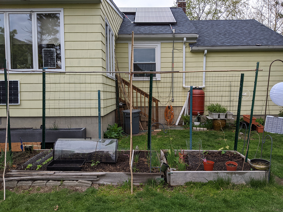 around 2:30pm we went to home depot to pick up a few things: two large bags of garden soil for the grow bags in my community garden; a bag of potting soil; a watering wand; and some jiffy pots. we also visited the new roche bros. supermarket, parked in their upstairs parking garage. the place had that nice clean new supermarket quality. i'd never been to a roche bros. before, the selection and prices reminded me of star market, in that it was expensive. we did buy some eggs, which were on sale for $3/2, but still more expensive than market basket, which last week had a dozen eggs for 99¢.