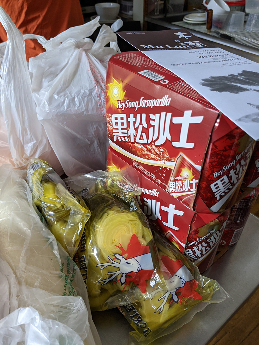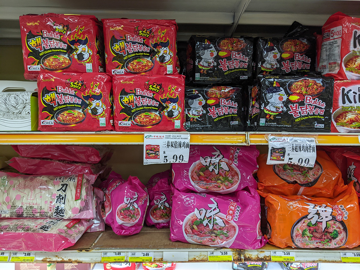 i arrived in chinatown by 1:45pm. i went to ming's market first, to get some watermelon seeds. i called my mother asking if she needed sichuan peppercorn, she also told me to get some sour mustards. i bought enough cafe supplies to use the cafe debit card to pay. next i went to c-mart, i search of buldak ramen. they had them but only sold them in 5-packs instead of individual servings, so i left with some heysong sarsaparilla on sale.