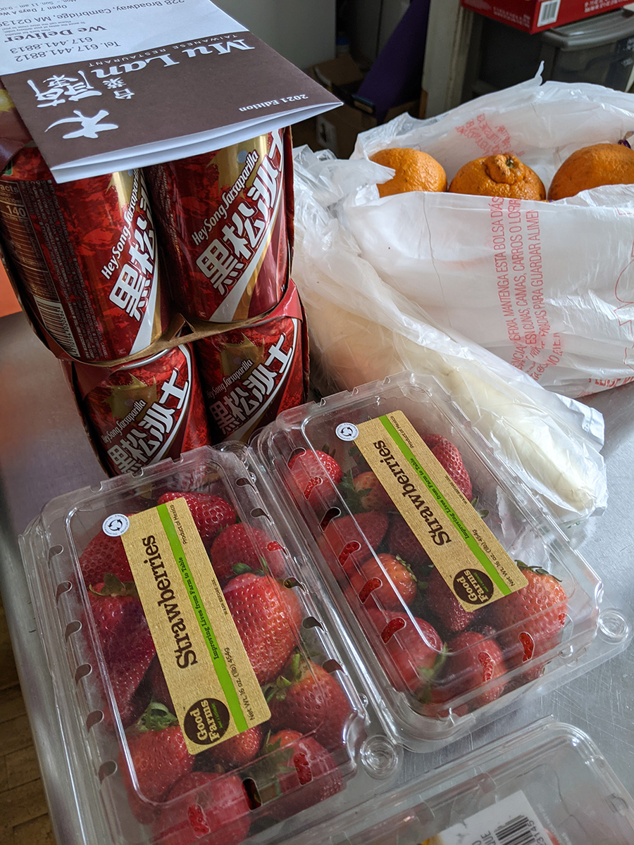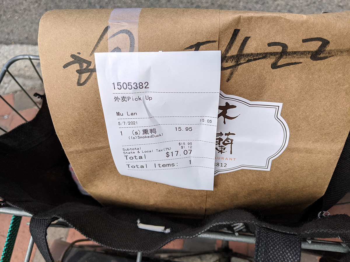 my final stop was to mulan on broadway, to get some smoked duck for my mother in honor of mother's day this weekend. while waiting for my order, i noticed a sign for "suanmeitang". after that i pedaled the 2.8 miles to the cafe to drop off the supplies.