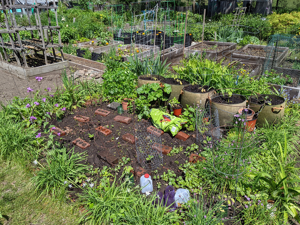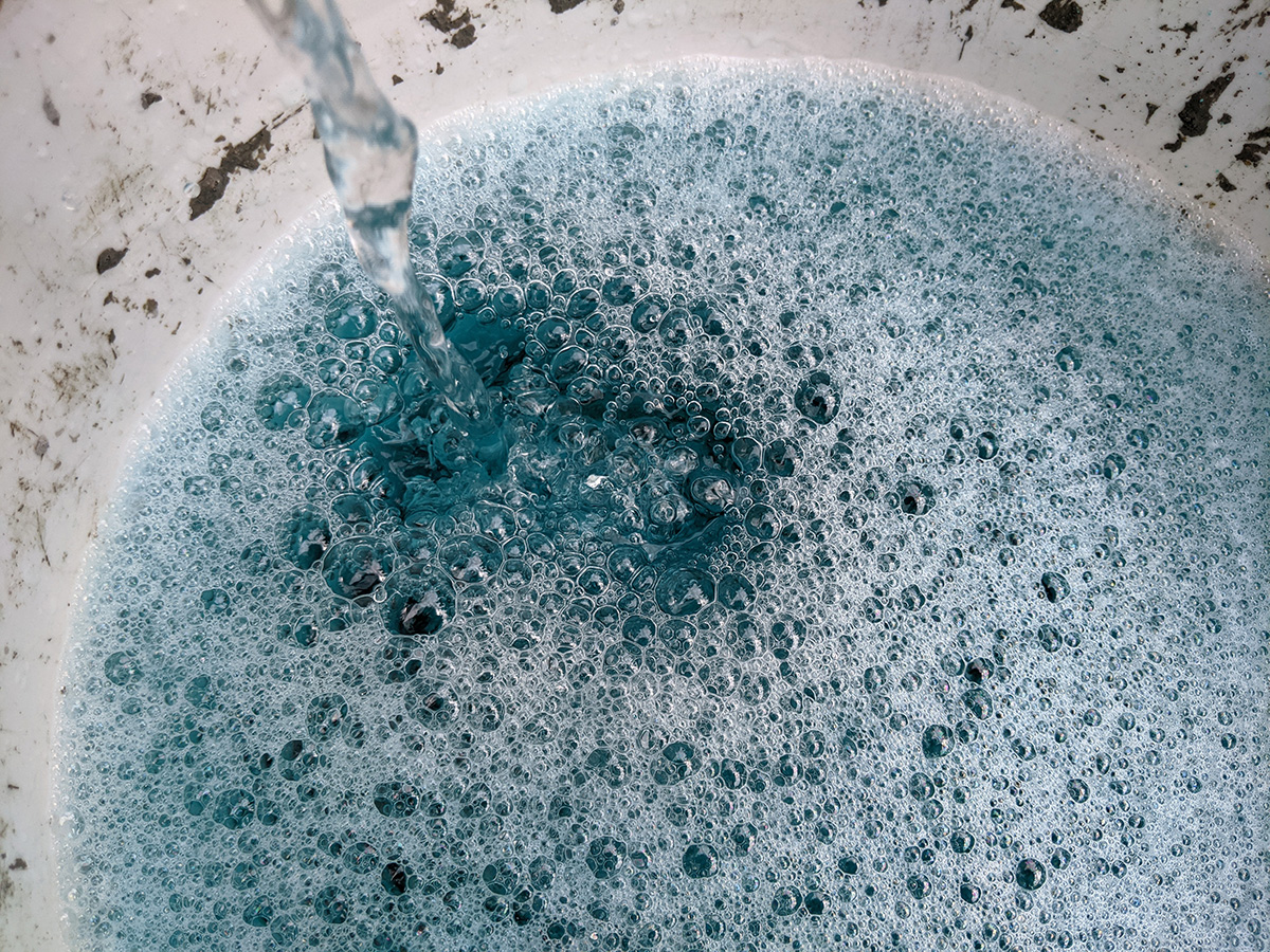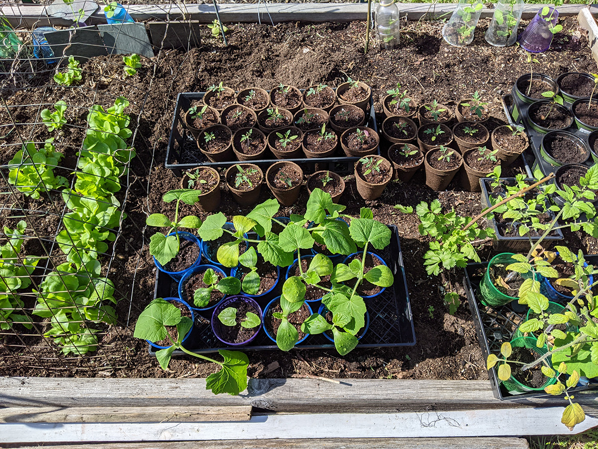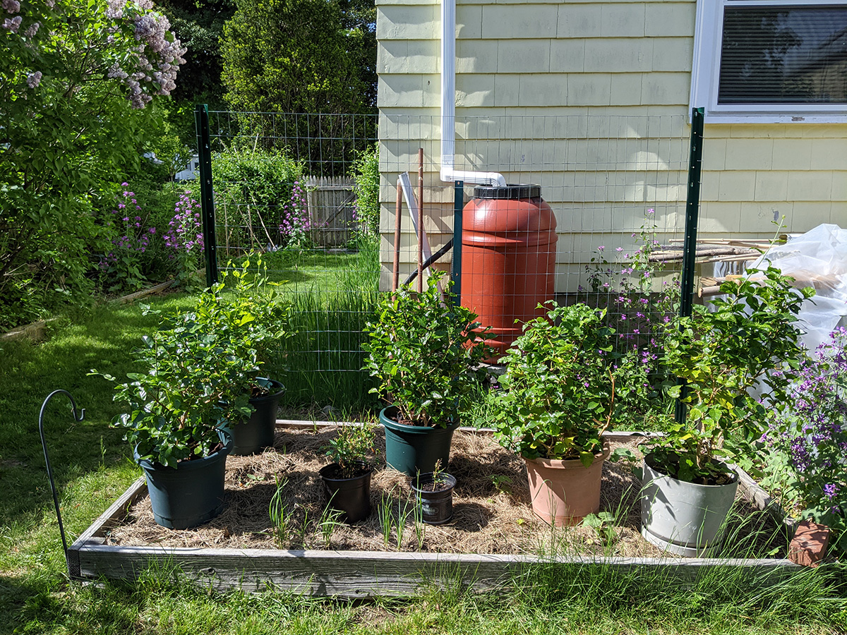 while inspecting the backyard, i noticed an aphid infestation on the large lupine in the southern perennial bed. i went inside and grabbed the insecticidal soap. these are fat lupine aphids (grape-seed size), the same ones we got last year. insecticidal soap will kill them on contact (they also lose their powdery coating), it's just an annoyance and we have to keep vigilante otherwise they come right back.