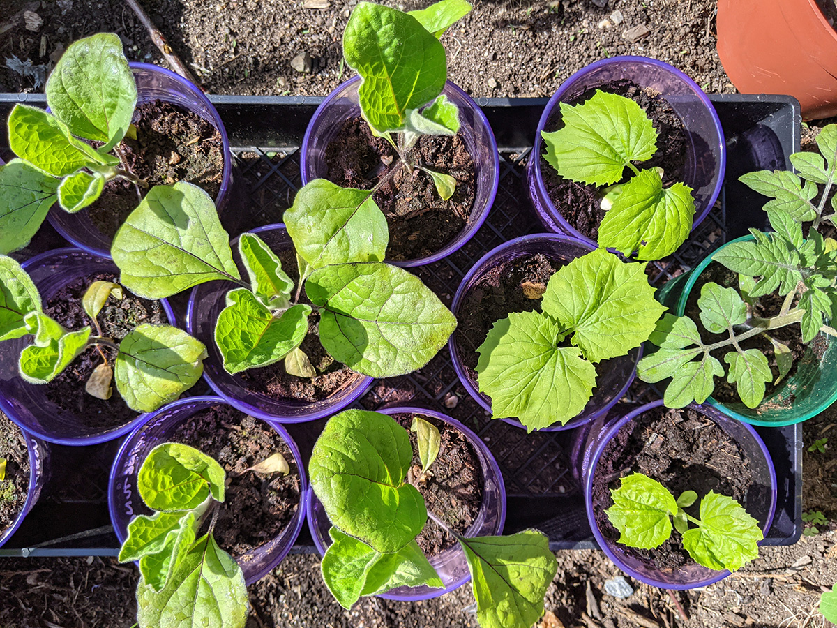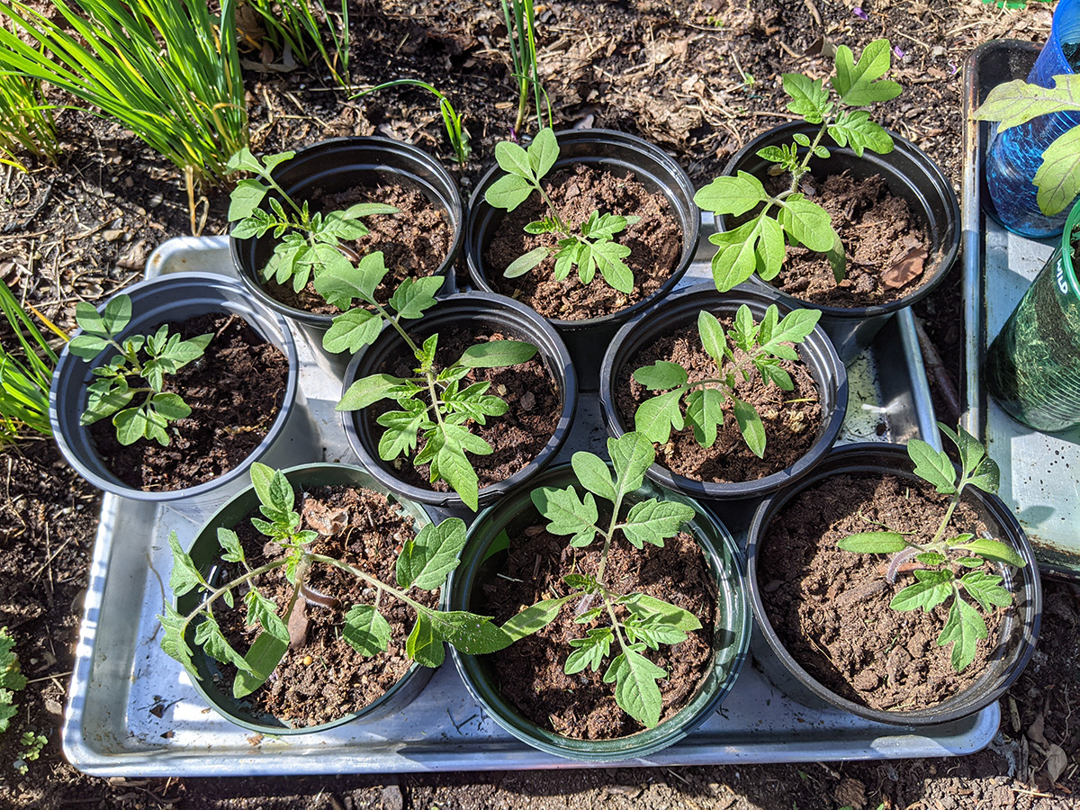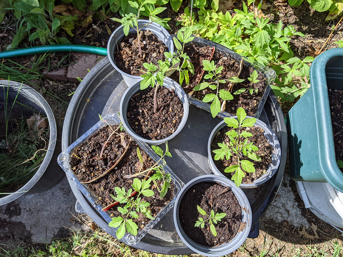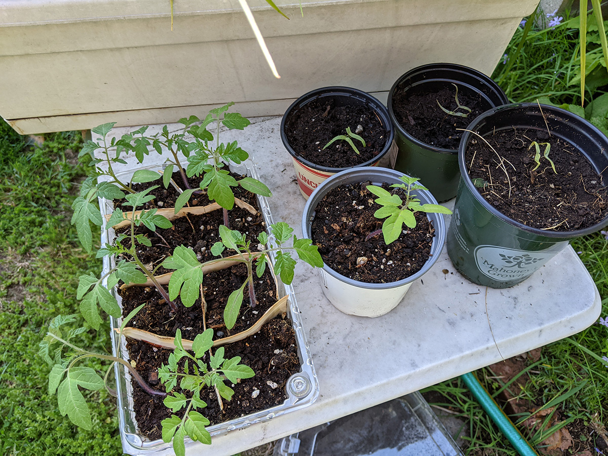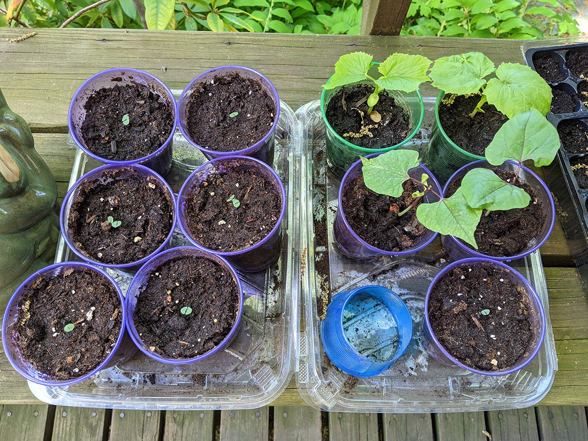 so much of today was about spraying and fertilizing. i mixed a gallon of immunox (2btsp) and sprayed the grapes. 1 gallon is a bit much, i kept spraying the grapevines multiple times until i finally ran out of fungicide; next time i only need to make 1/2 gallon. next i made 1/2 gallon of neem oil solution and sprayed the jasmines and gardenia. once that was done, i applied miracle-gro water soluble plant food to the various plants: all purpose solution for the jasmines (making sure to dilute it for potted plants), chrysanthemums, and peonies; acid-loving plant food for the hydrangeas and the frontyard holly. i also wanted to spray some copper solution on the cherry and plum trees to act as a basic fungicide, but our backyard neighbor was working in his garden and i didn't want to spray while he was there, in case of drifting. i also divided some hyacinth bean seedlings, turned 3 sprouted pots into 6 seedlings.