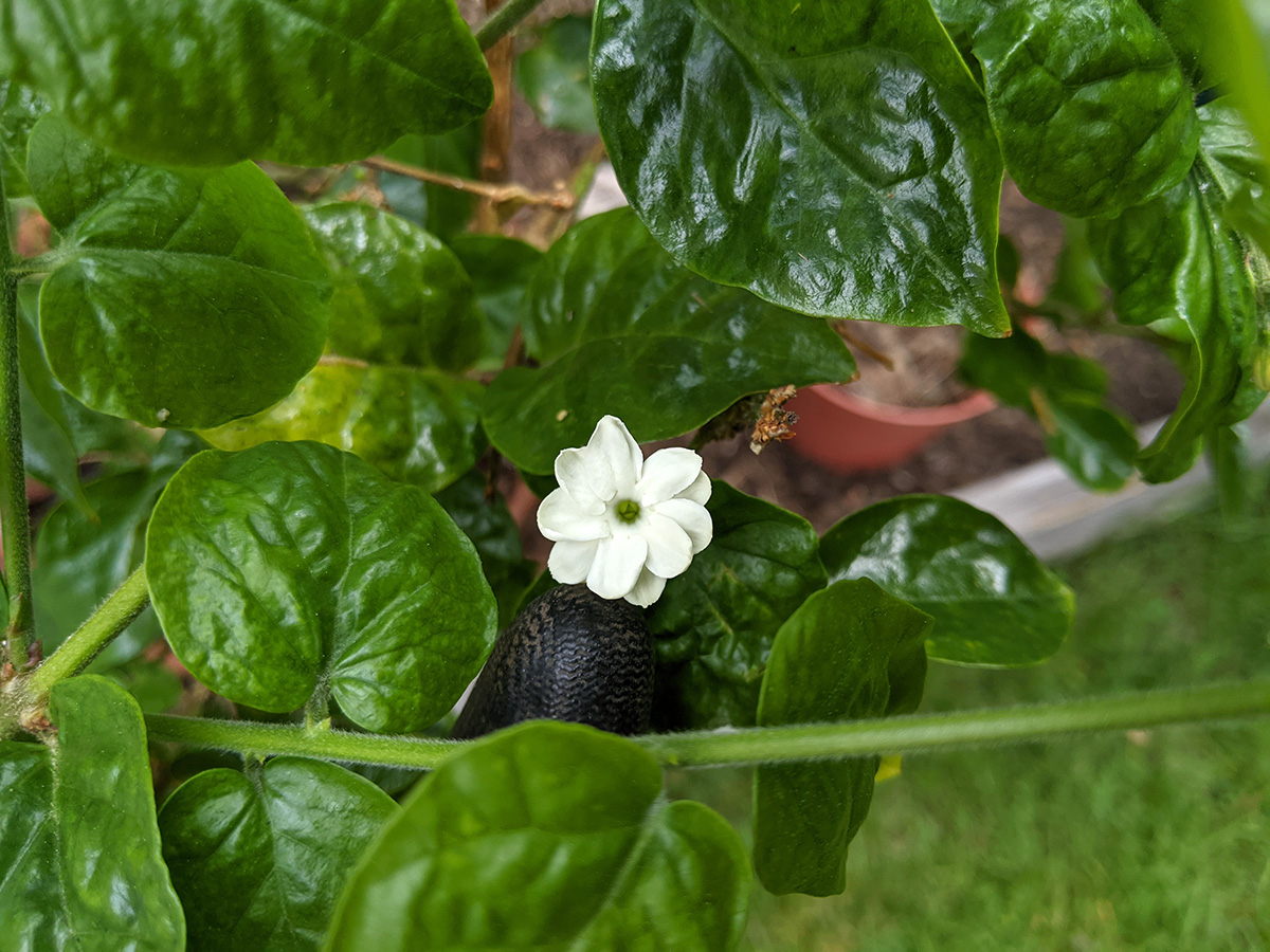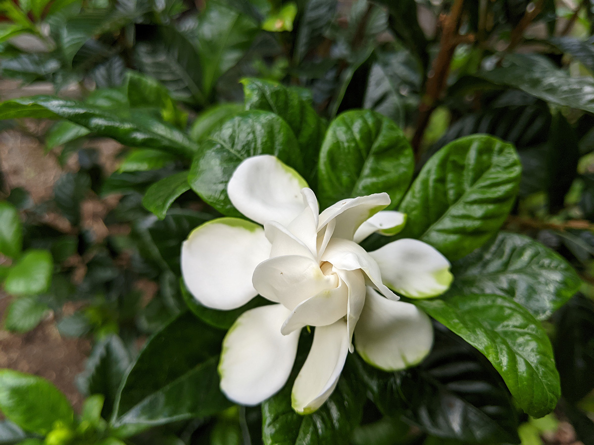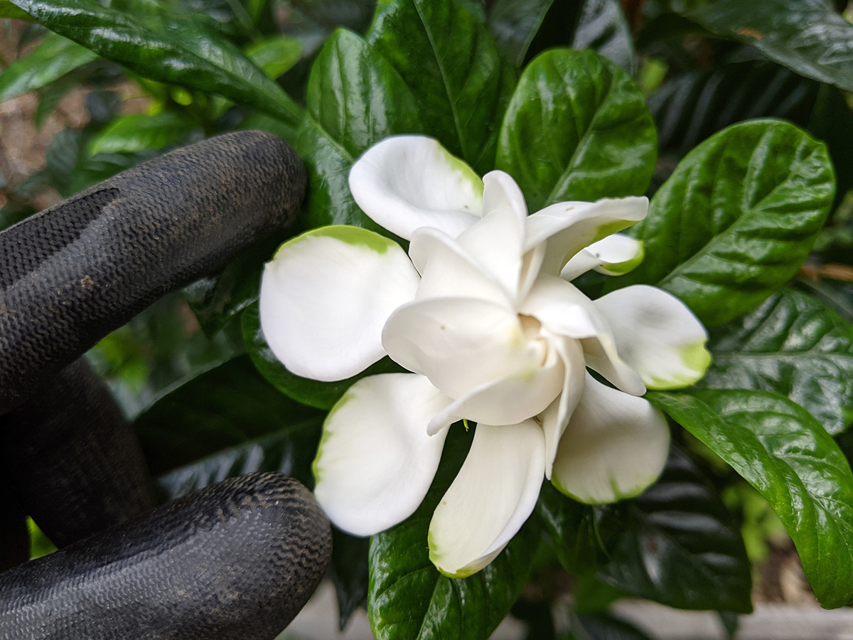 one of the gardenia buds have started to flower. i took a sniff, it was fragrant, but the smell was sort of nondescript, i wouldn't be able to recognize it if i smelled it again. it also smelled like something else that i couldn't quite remember. the pot itself felt a bit light (dry), so i watered it with a gallon of miracle-gro acid-loving fertilizer.