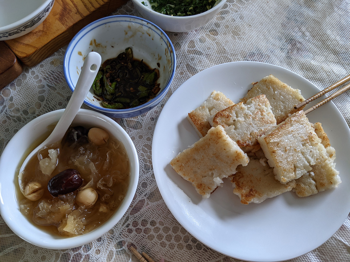 i went inside briefly to have some lunch, some rice noodles and radish cakes, before going back outside again.