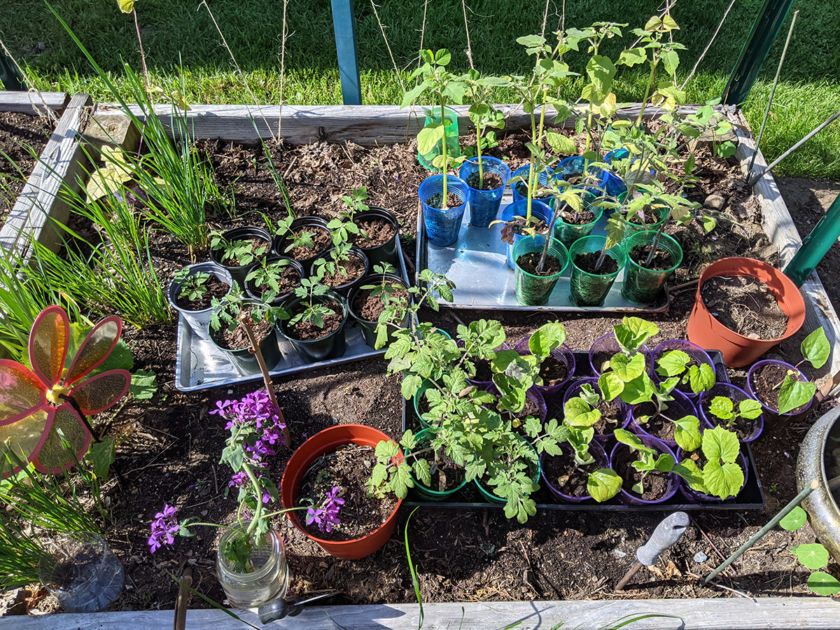 i finally went inside by 4pm. we ended up not planting any of my seedlings, hopefully we can do that tomorrow. we also finally turned off the basement furnace. the heat hasn't kicked in for weeks, but as long as the furnace is on, it uses up a bit of heating oil. but turning off the furnace marks the transition to summertime cooling. my father still needs to turn off the cafe furnace (which runs on gas).