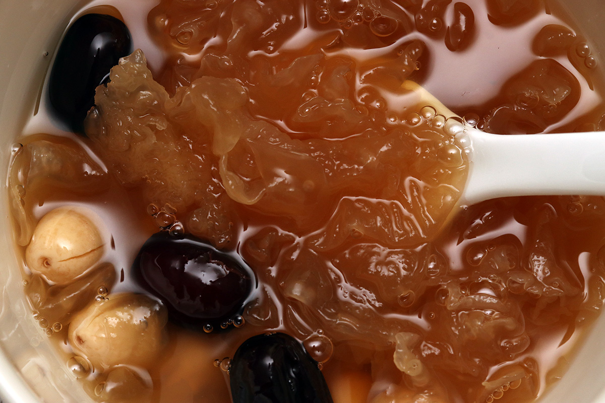 for dinner we had fried pancakes rolled up with scallions and braised beef. i also had some yin-er soup (snow fungus with lotus seed soup).