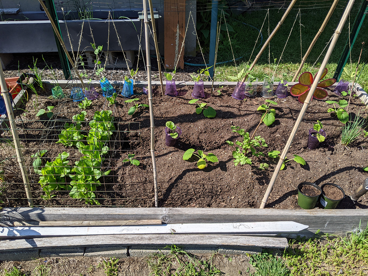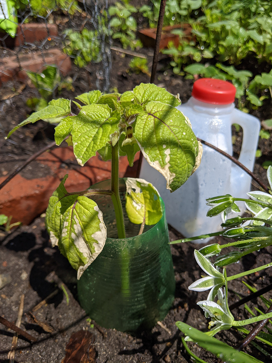 after using the bathroom and taking a shower, i moseyed down to the community garden in the late morning to water my plot. i noticed some of my seedlings have leaf scorches. either it's transplant shock or nutrient excess. it could be over-fertilizing because i sprinkled some espoma 10-10-10 plant food into the burial holes. i'm hoping it's just simple transplant shock though, and the plants will outgrow it eventually. returning home, i stopped by star market to pick up some corn chips to bring to belmont to go with the guacamole i brought over the weekend.