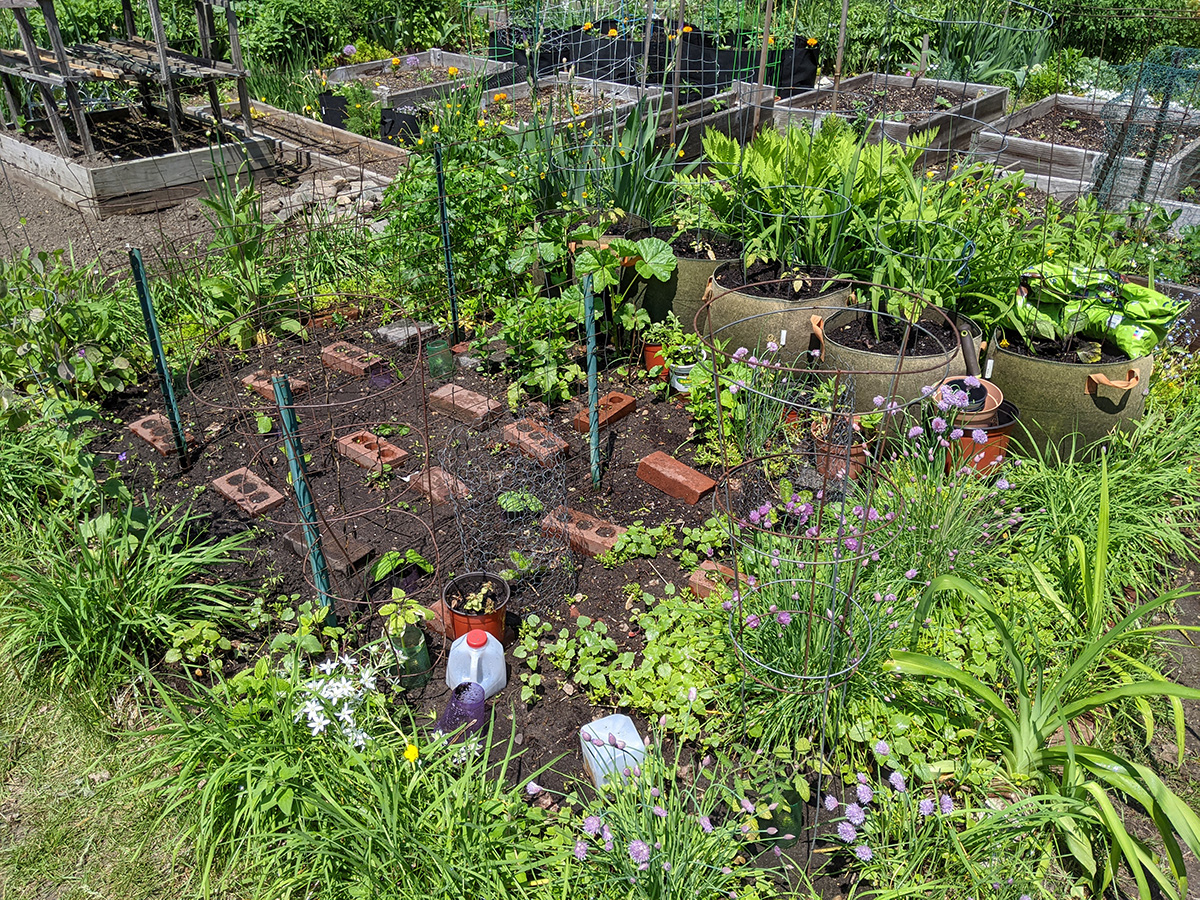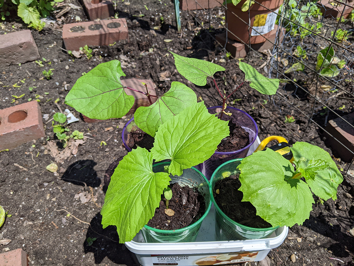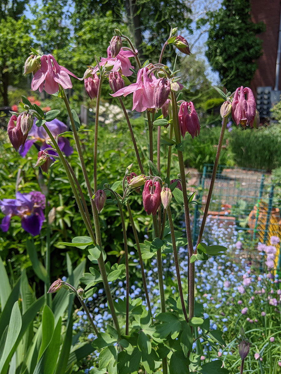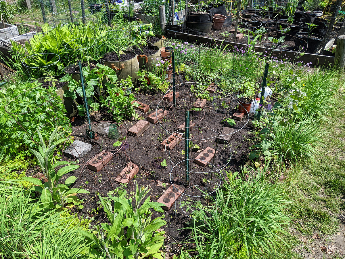 i walked down to the community garden (without mask) in the late morning to plant my hyacinth beans and bitter melons. i planted the two hyacinth beans on the western side (taller trellis) while the two bitter melons on the eastern side (more sun). not much else was happening in my plot, the bearded irises at the far end of my garden have started to bloom.
