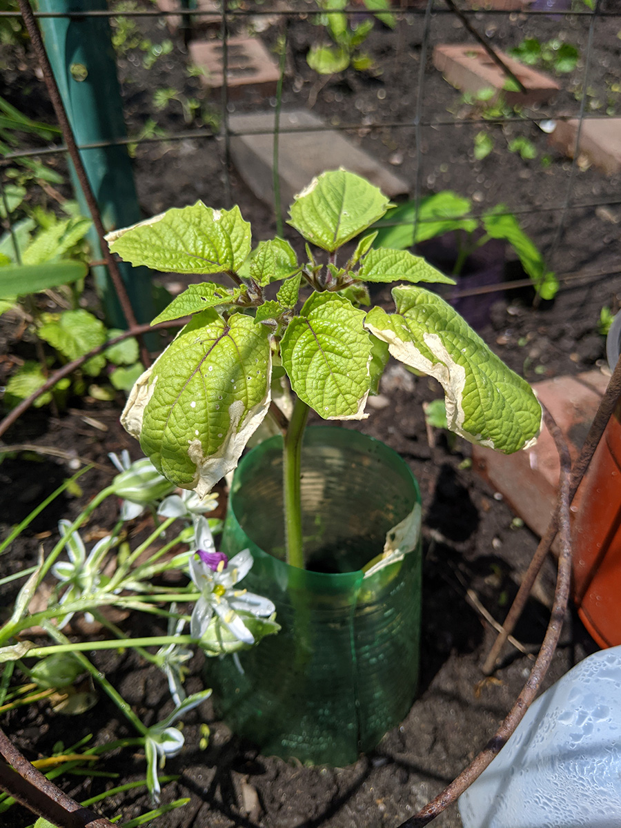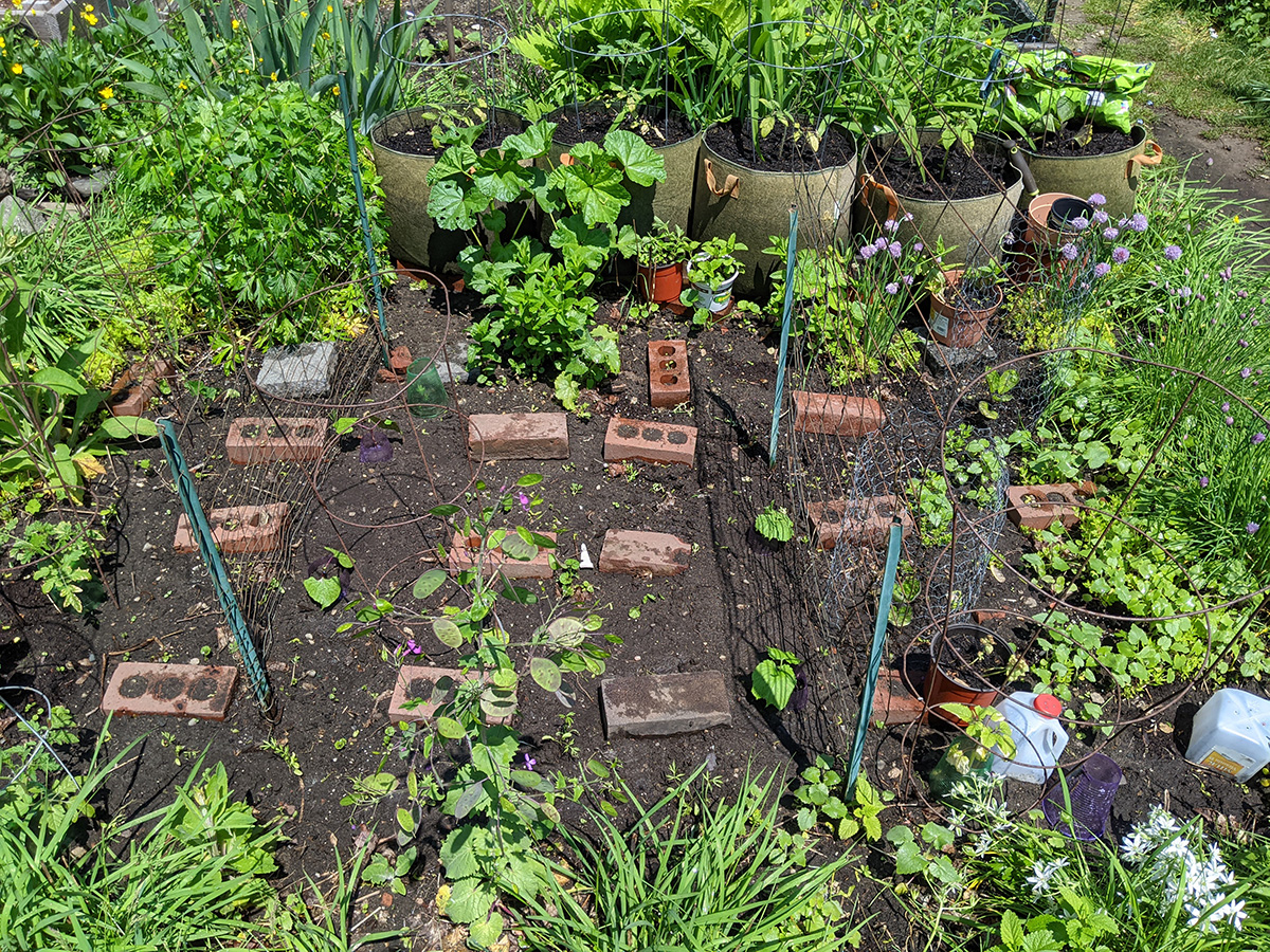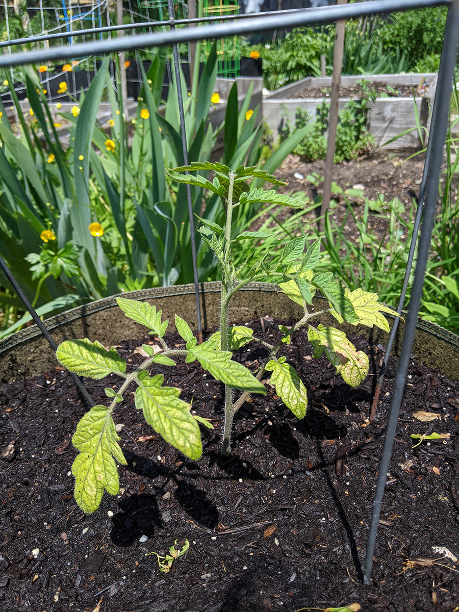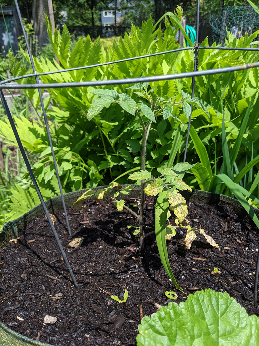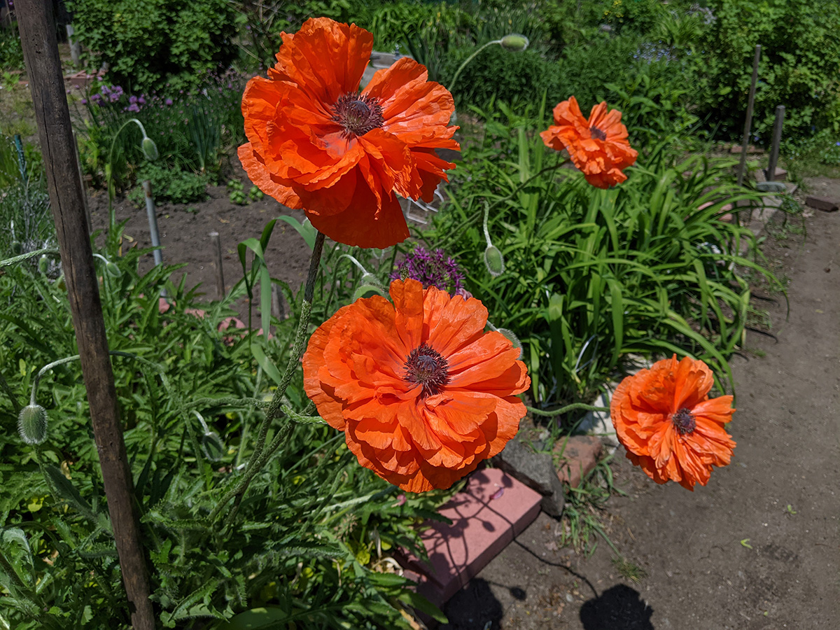 i walked down to the community garden (without mask) in the late morning to plant my hyacinth beans and bitter melons. i planted the two hyacinth beans on the western side (taller trellis) while the two bitter melons on the eastern side (more sun). not much else was happening in my plot, the bearded irises at the far end of my garden have started to bloom.