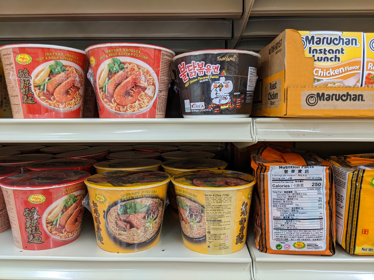 i biked to market basket in the afternoon after figuring out what i wanted to make for dinner the rest of the week (buffalo chicken wrap). i bought a bowl of korean hot chicken buldak to try out. they also sold jars of baek kimchi which i got to try out. i noticed something in the produce department: they got rid of all their one-way signs; although they still kept the one-way aisle stickers in the rest of the store. maybe they're phasing out the one way aisles altogether? it doesn't seem like anyone was following them anyway during the pandemic. i stopped home briefly before biking down to the cafe.