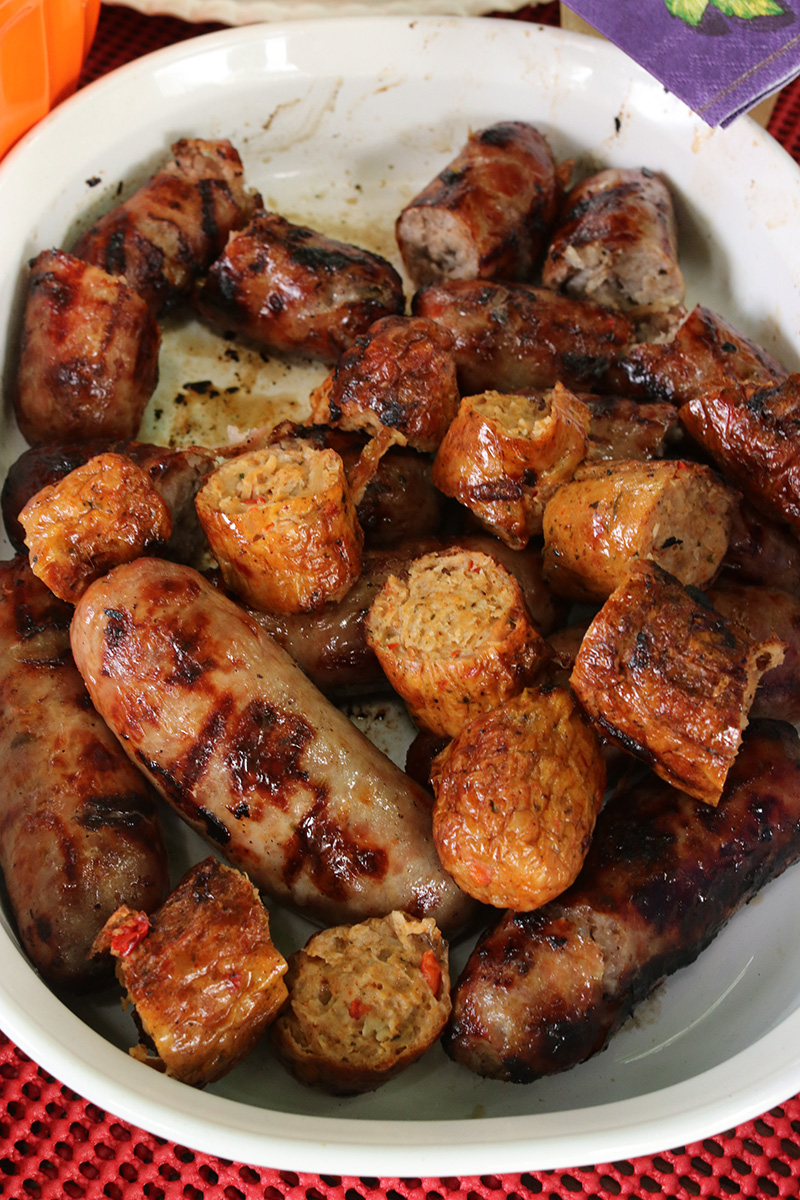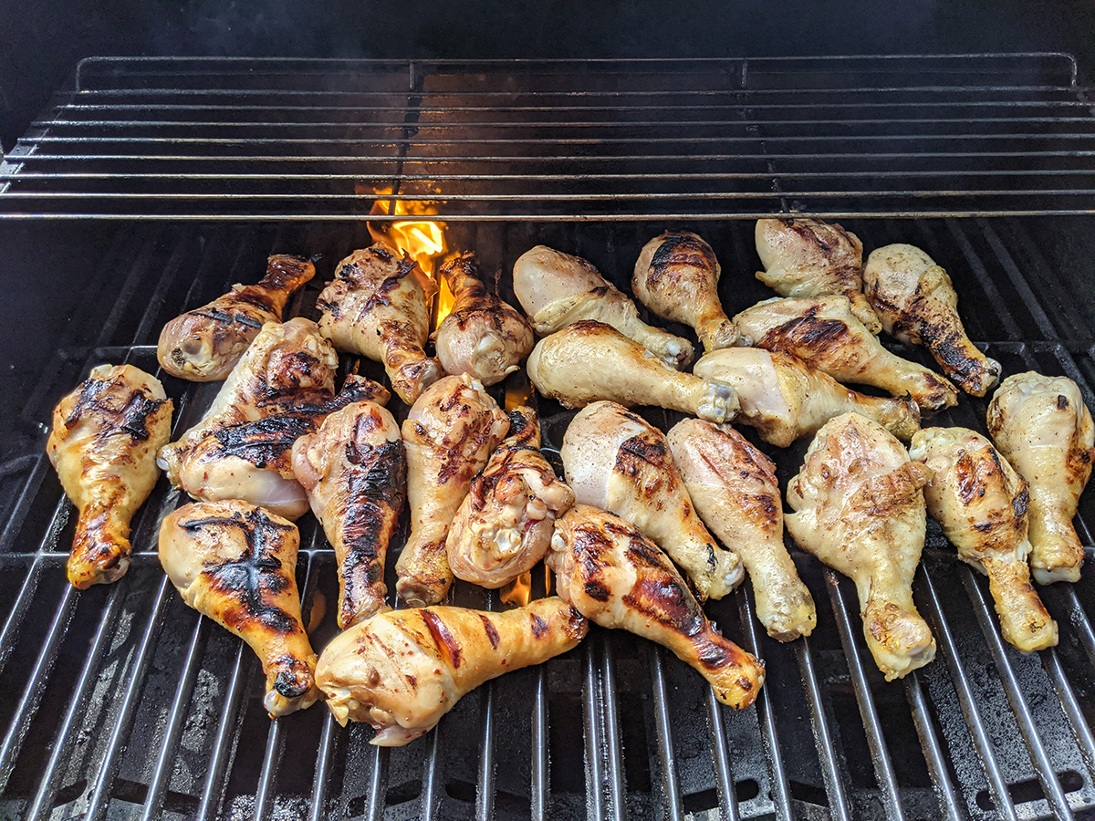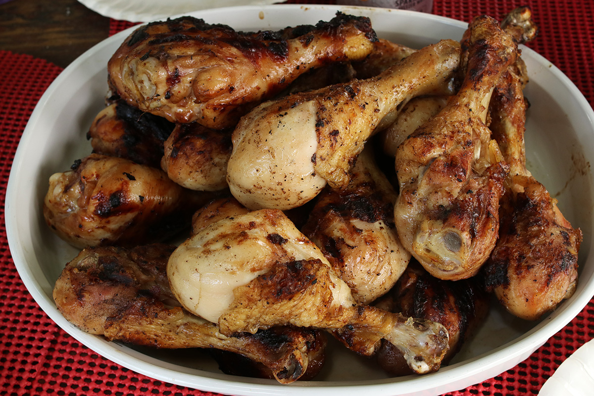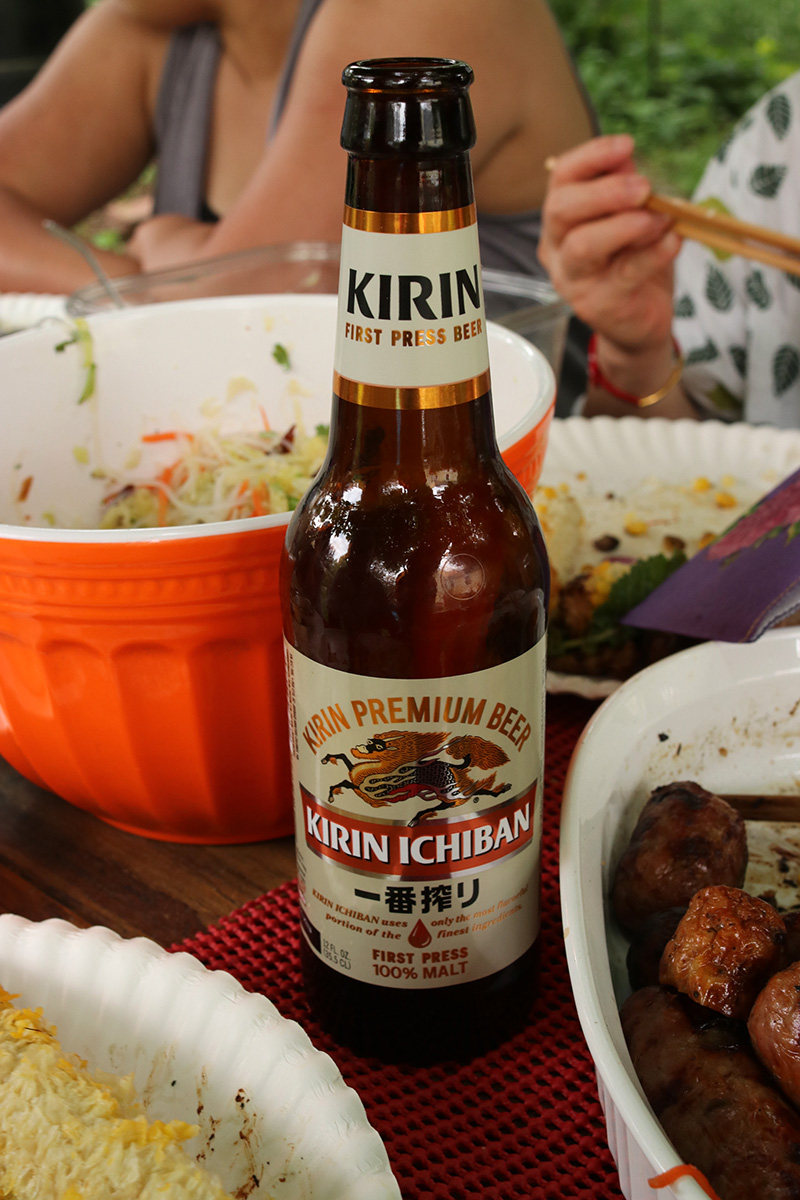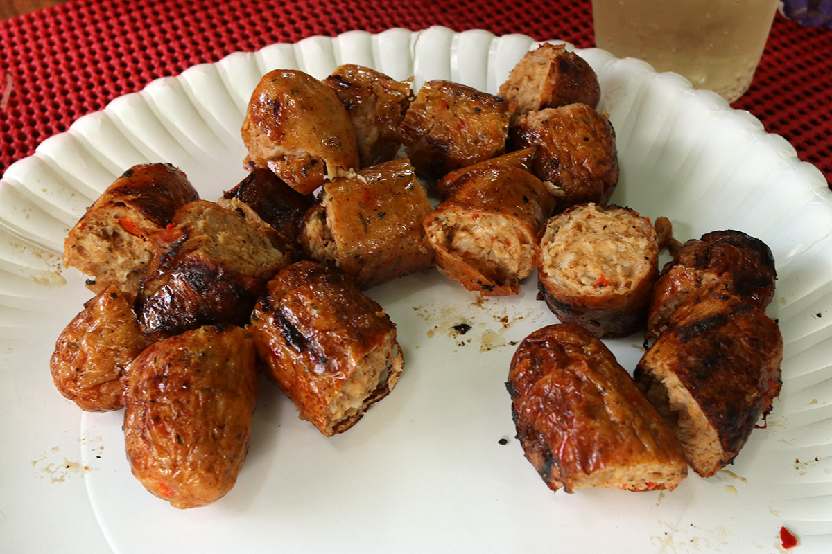 we grilled the drumsticks first. i manned the grill for most of the time, to ensure we get that crispy crust before we turn the grill down to low heat. after the drumsticks were done, we grilled the sausages on high heat. there was a small grease fire as the oil from the sausages dripped down into the gas turrets. my father took over as i went to go eat.