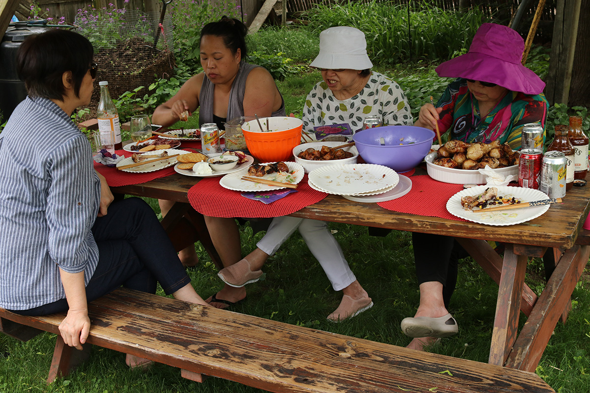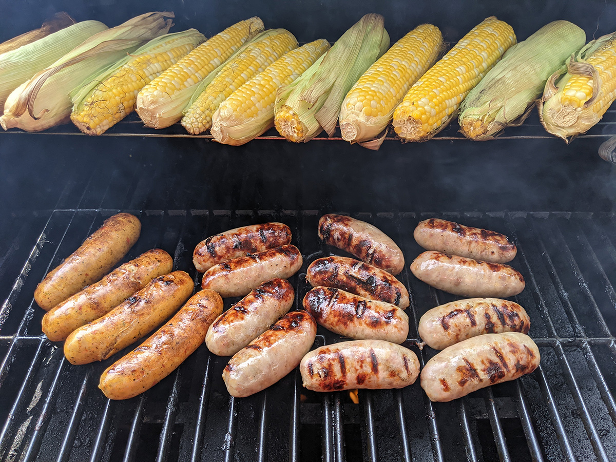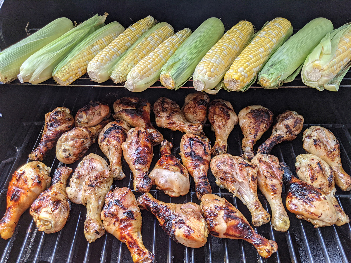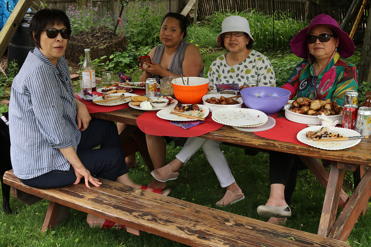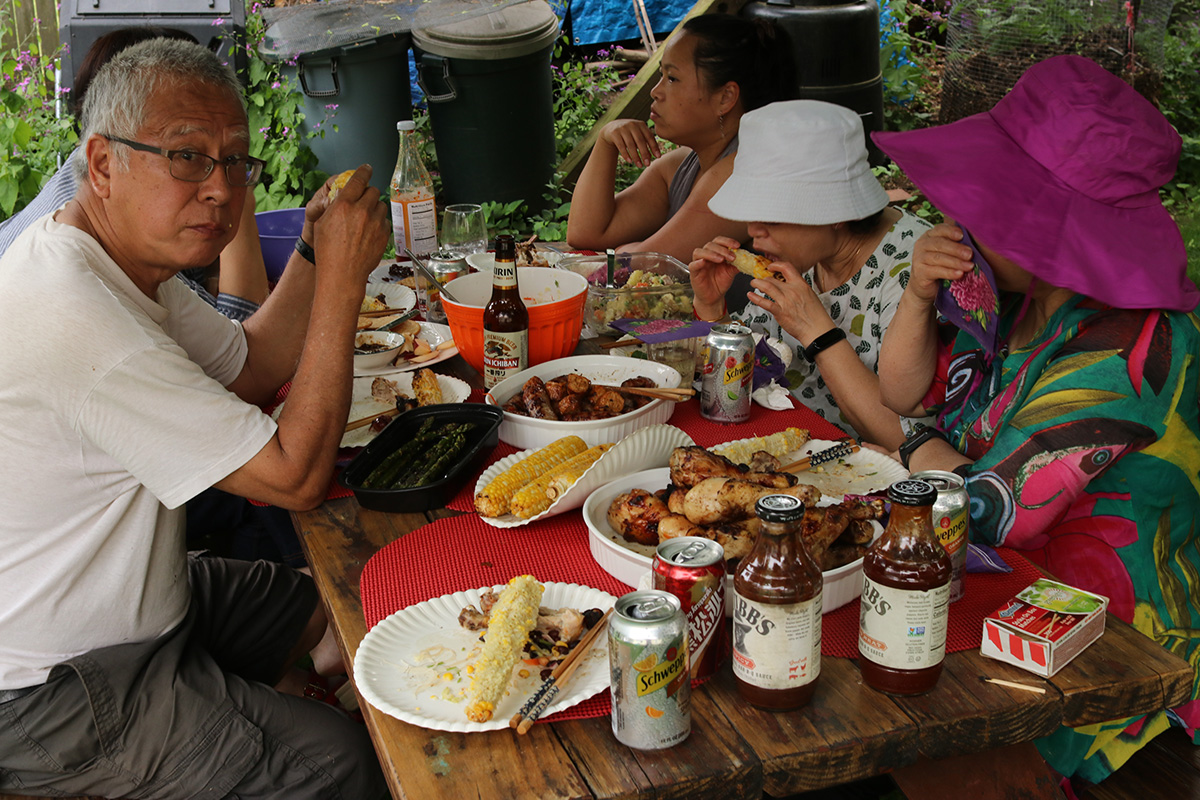 we started grilling around 2:30pm, before my sister showed up with her godmother and my 2nd aunt around 3pm. today was a hot day - in the 80's - but there was no rain, even though my father was hoping for a shower to replenish the rain barrels. we got maybe about 2 days left of water before the barrels will run dry. the long range forecast doesn't show any significant rain.