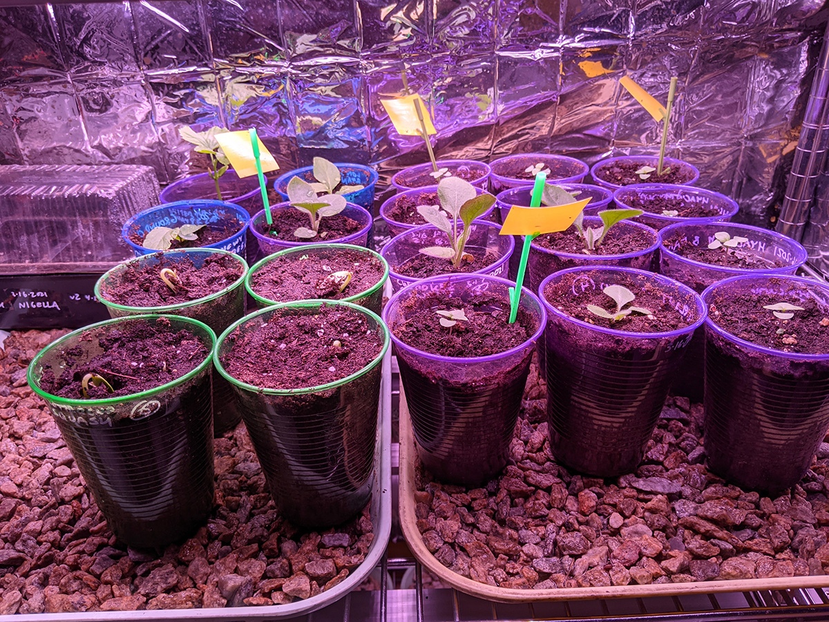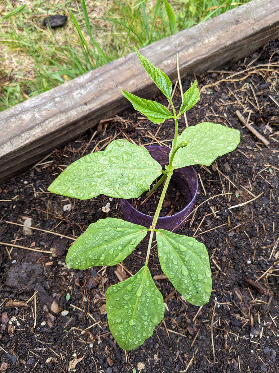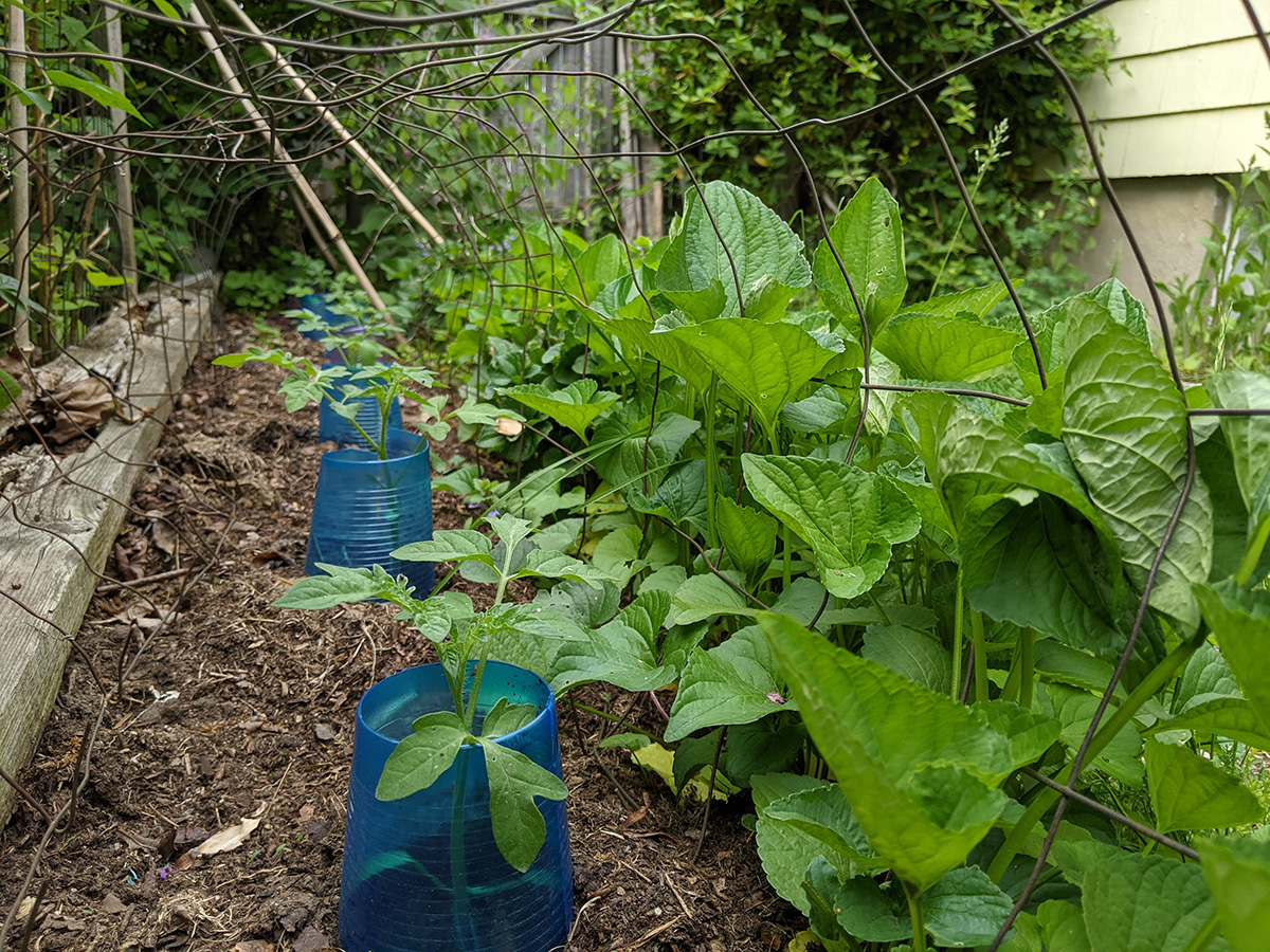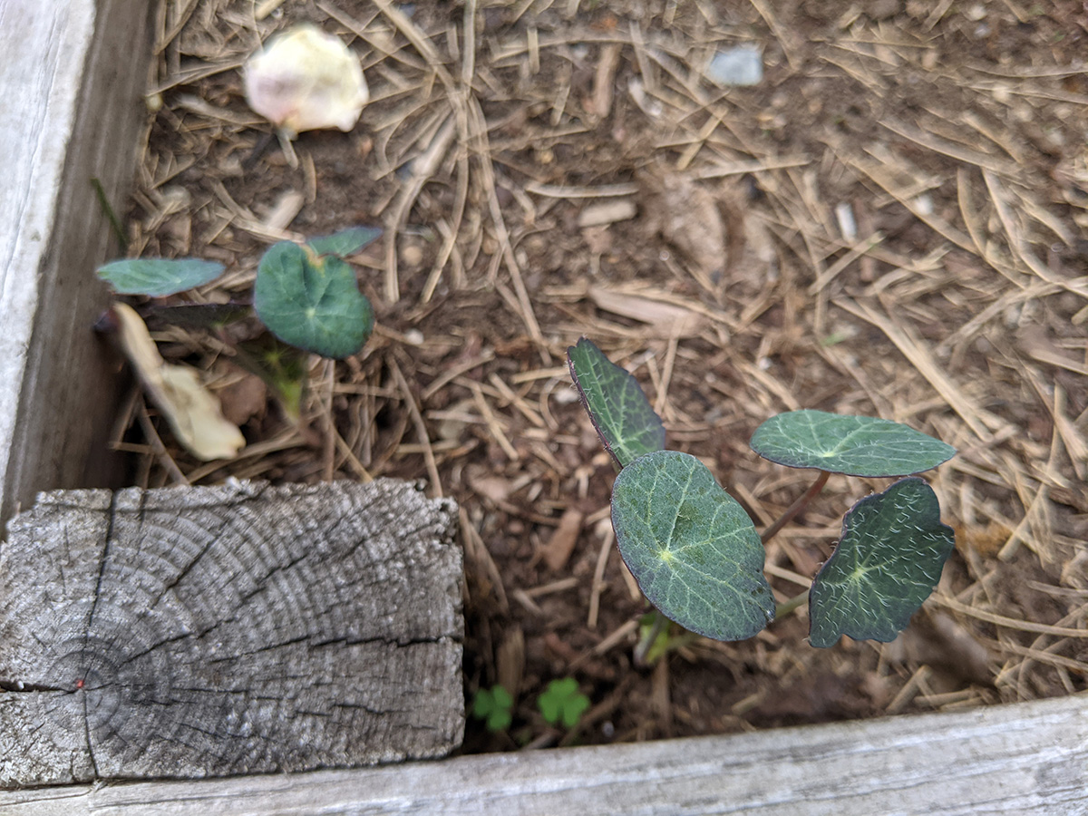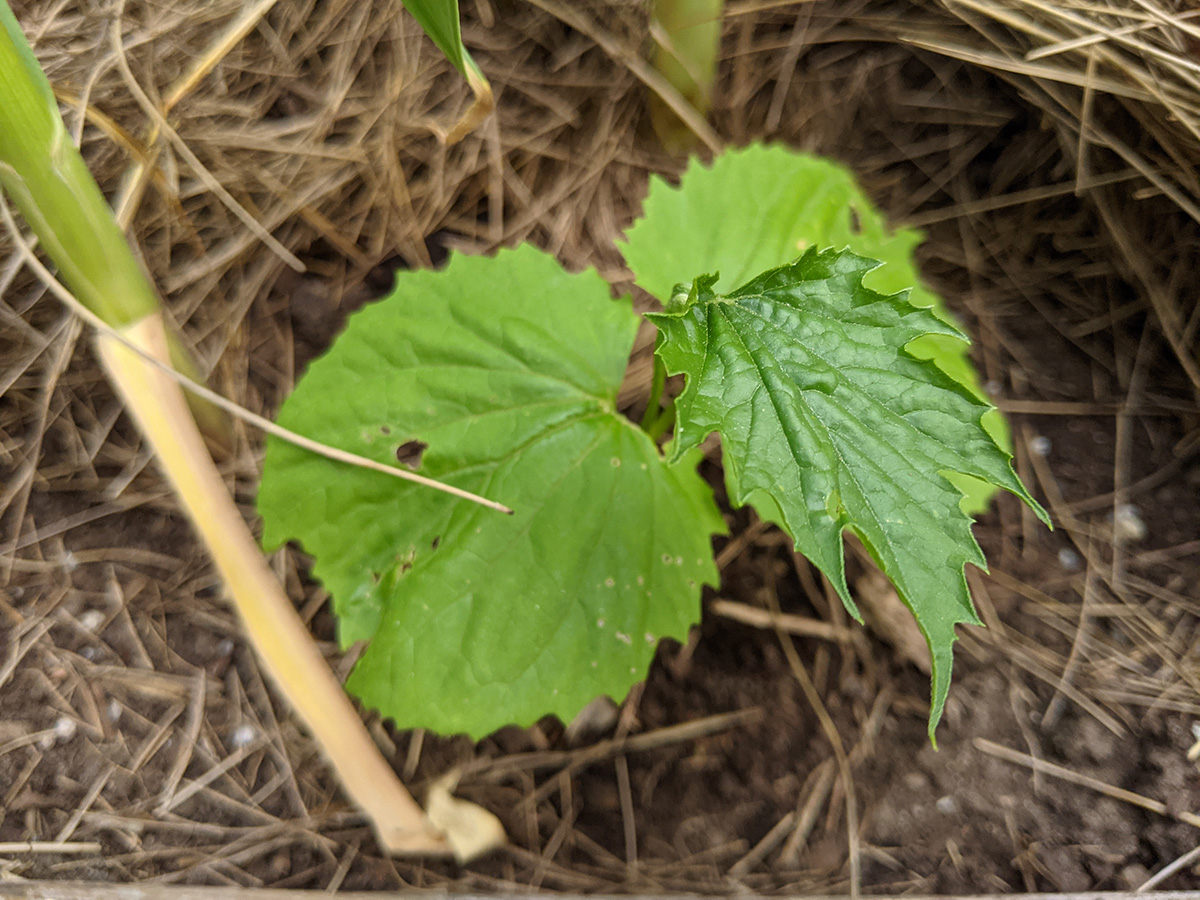 my father also showed me that something (most likely slugs) had been feeding on the bitter melons. one of them lost its tip, while two others are still okay. i have a backup bitter melon seedling in my grow closet, if the damaged seedling doesn't make it, we can always swap it out.