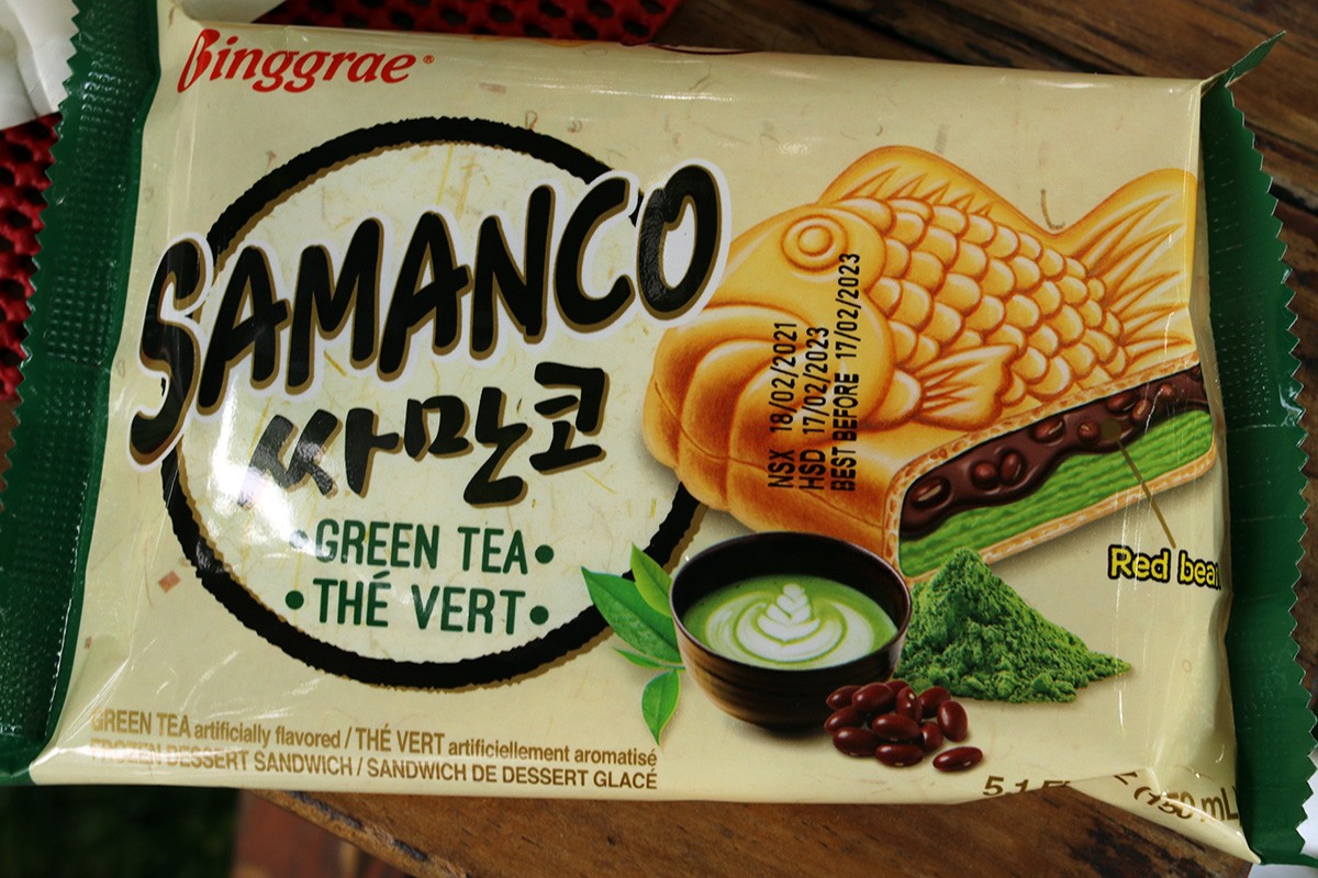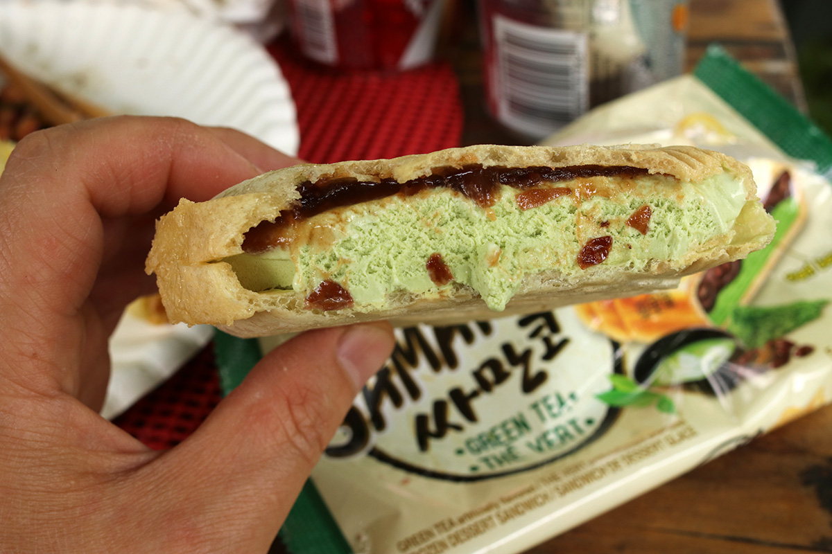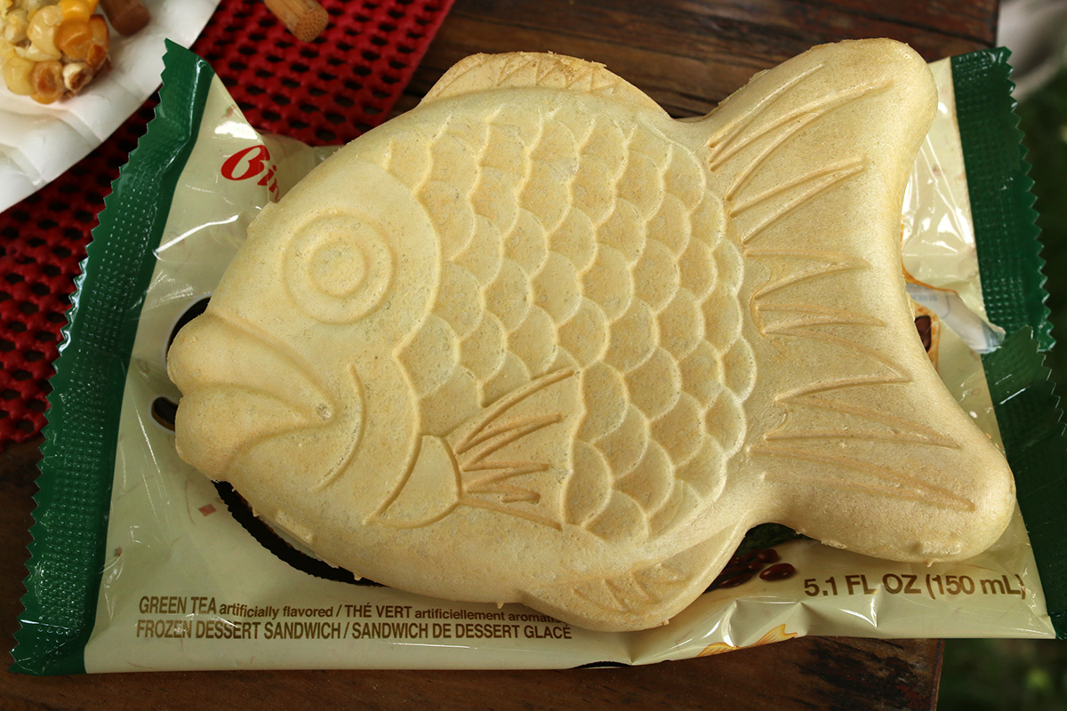 my sister's godmother bought some taiyaki fish ice cream sandwiches from h-mart, because she heard my sister mention the brown sugar boba fish sandwich i gave her a few weeks ago. unfortunately they were out of the brown sugar boba flavor at h-mart, so they just got green tea and adzuki beans. i had a green tea fish ice, everyone sat outside enjoying dessert. my nose was a little congested due to the high pollen count, so my sense of smell was a bit dulled, but the brown sugar boba flavor is still the best.