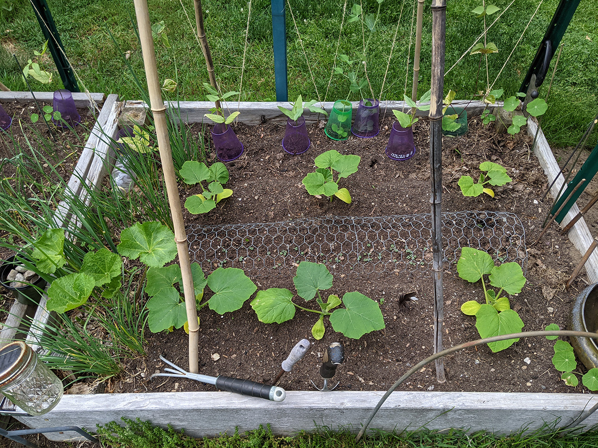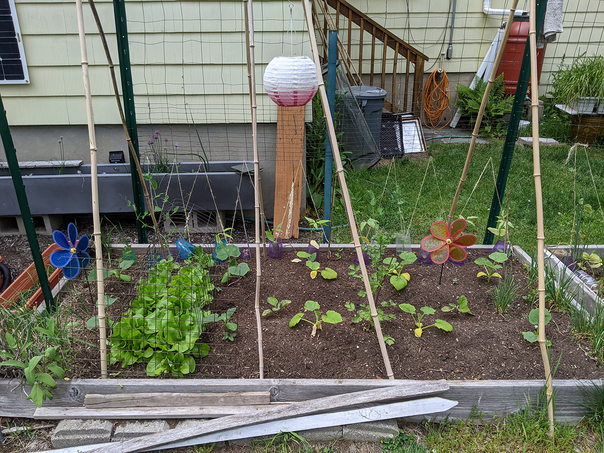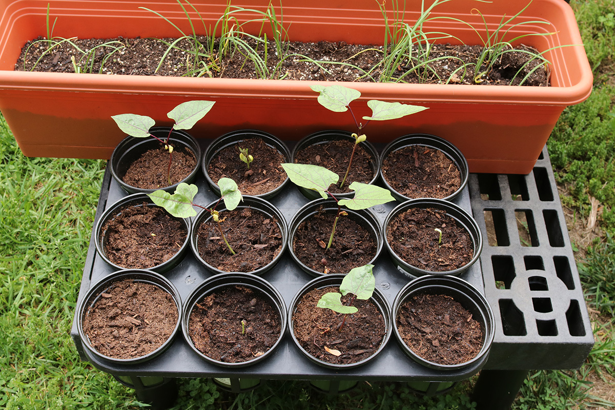 i also mixed half a gallon of neem oil and sprayed the cherry plum. i sprayed 4 days ago, but we have to do it a few times a week in order to keep the aphids under control. my father showed me that all the japanese red mustard seeds in RB0 had germinated. we planted them on monday, the same day we planted the seedlings in RB4. now that the weather has turned hot though, i don't know if the mustards will bolt or not. if so, at the very least we can collect more seeds when we sow again in late summer for a fall crop.
