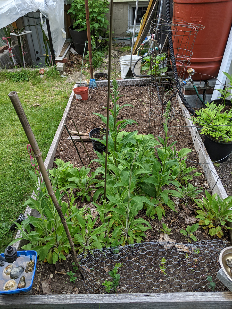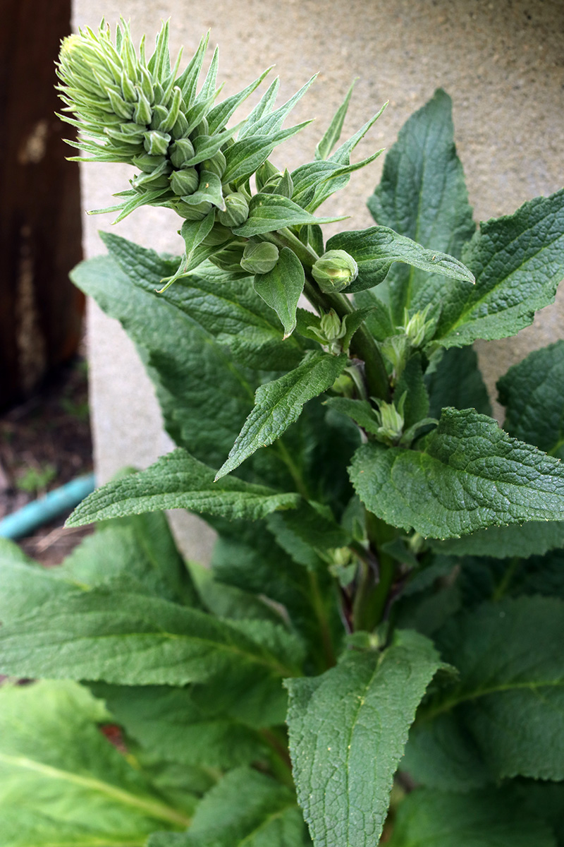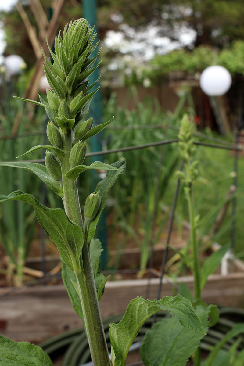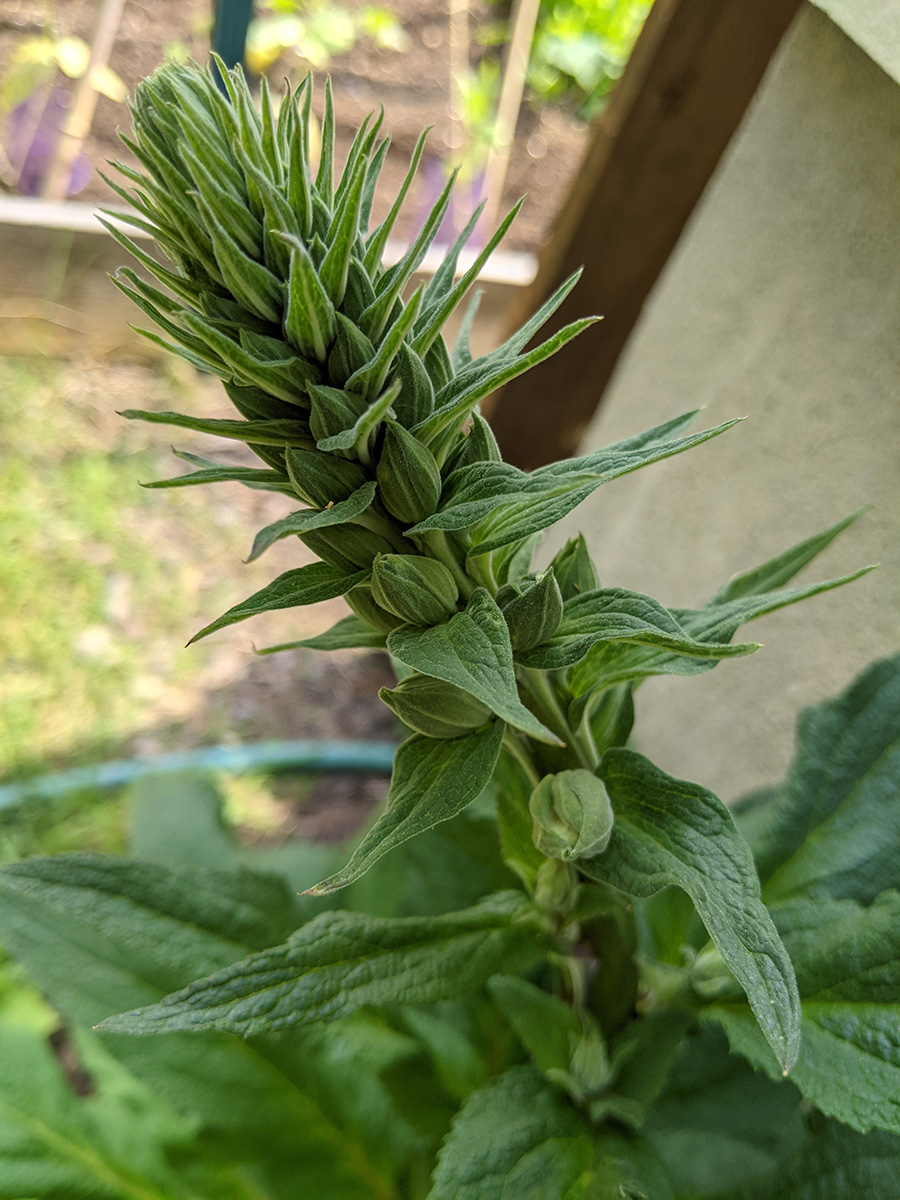 elsewhere, soon the foxgloves will be flowering. just last week they were all leaves, but this week most of them have formed flower stalks with many buds. foxgloves are weird in that the buds initially appear yellow, but over time they'll turn pink. we've got a few really healthy foxglove plants, it's going to be a good year for them. i'd love to grow some different kinds in the backyard. right now we just have pink, sometimes a little deeper pink than some others, but still pink. i see foxgloves can also come in cream yellow, peach, red, white, and purples.