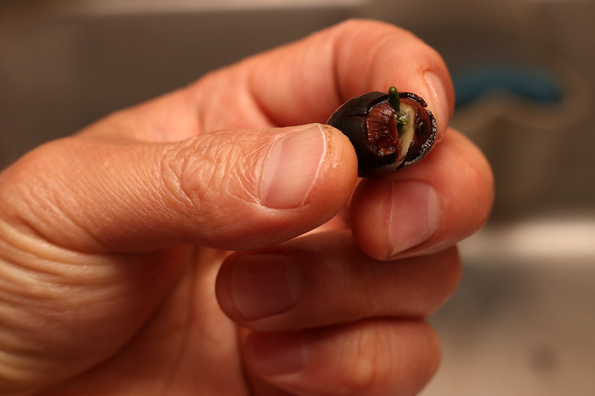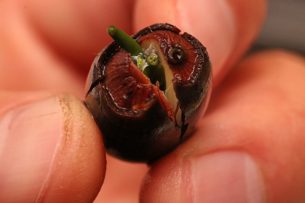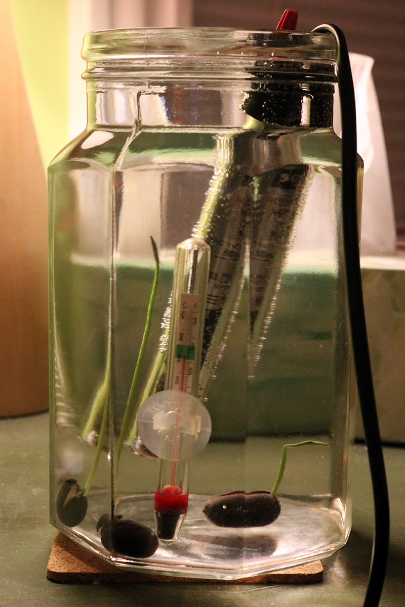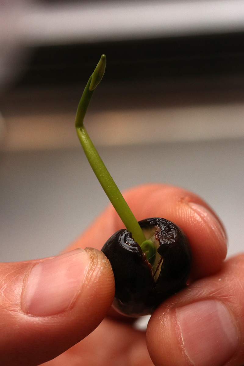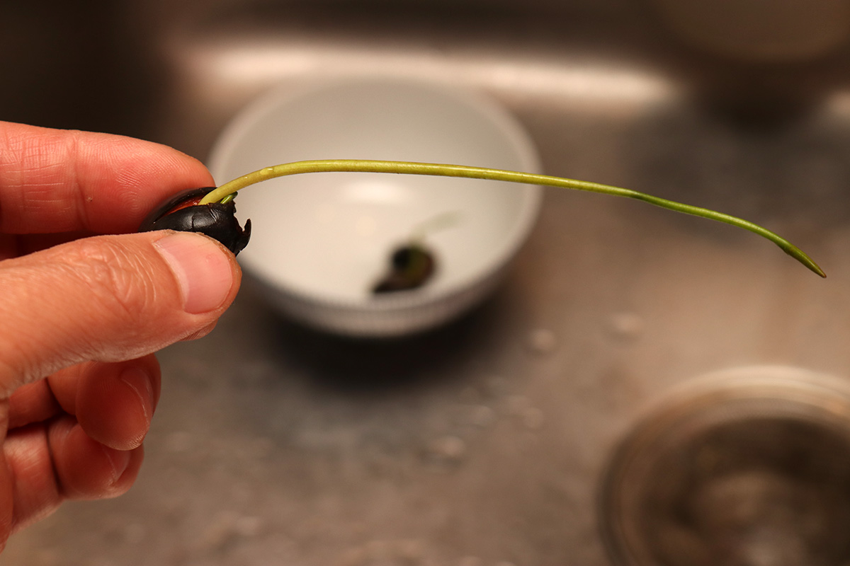the longest lotus seed has a 6" stalk. the 3rd seed sprouted, but i think something happened and the stalk broke. the part that's stick out is just the nub, the top half of the stalk is still inside the seed. whether it'll continue to grow or not i don't know. so out of 5 lotus seeds, i've got 2 viable seedlings. i'm find with that, i would've been happy with just one seedling.