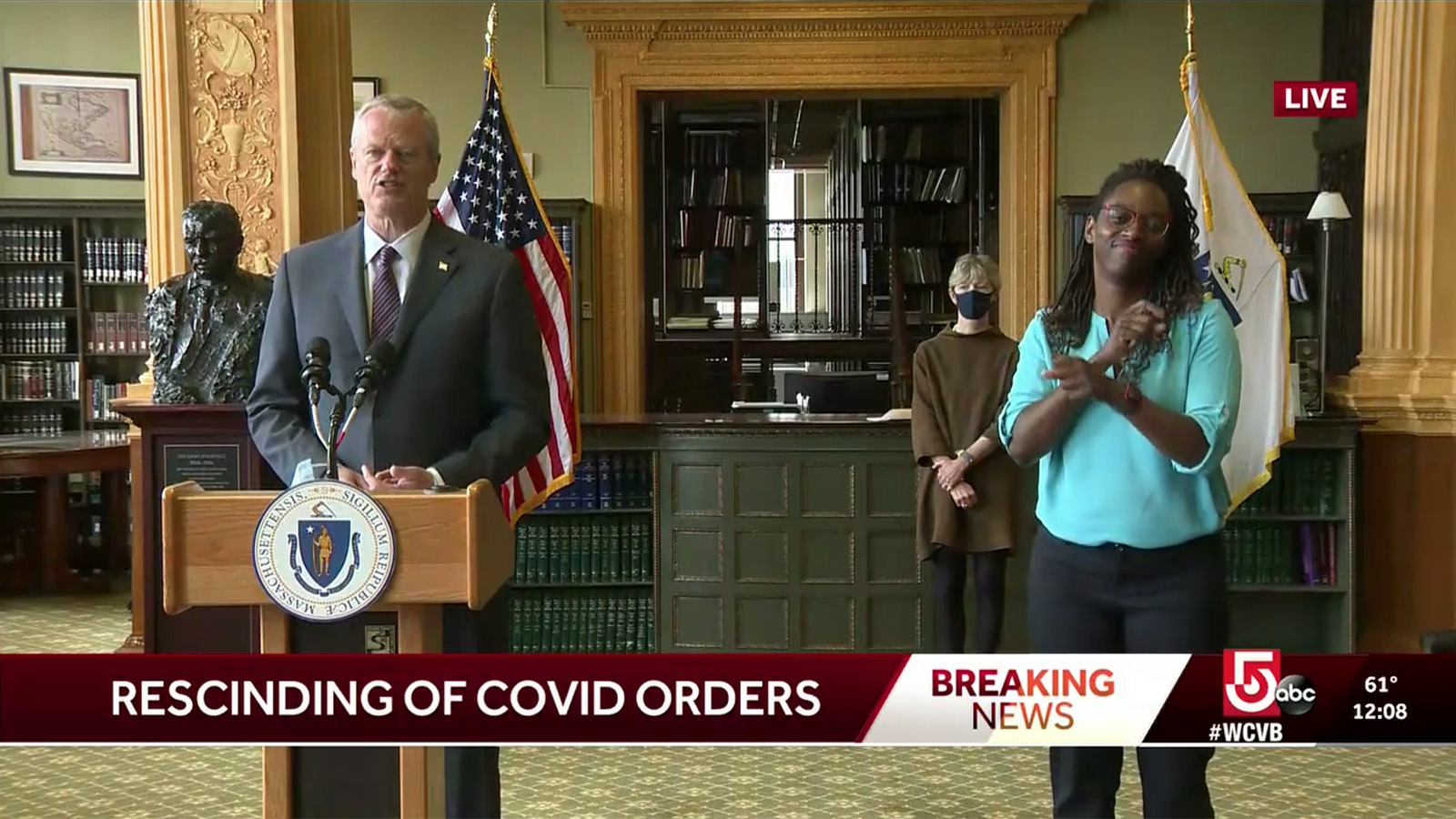 i returned home by noontime to catch the news. i noticed there were a bunch of helicopters flying overhead while i was in the garden; turns out there was a report of a gunman hiding in carmichael hall at tufts university. later it was reported to be a false report. the news was also preempted by governor's baker announcement to rescind covid restrictions for massachusetts beginning tomorrow. it was a signing ceremony so after his speech, he sat down and signed the executive order.