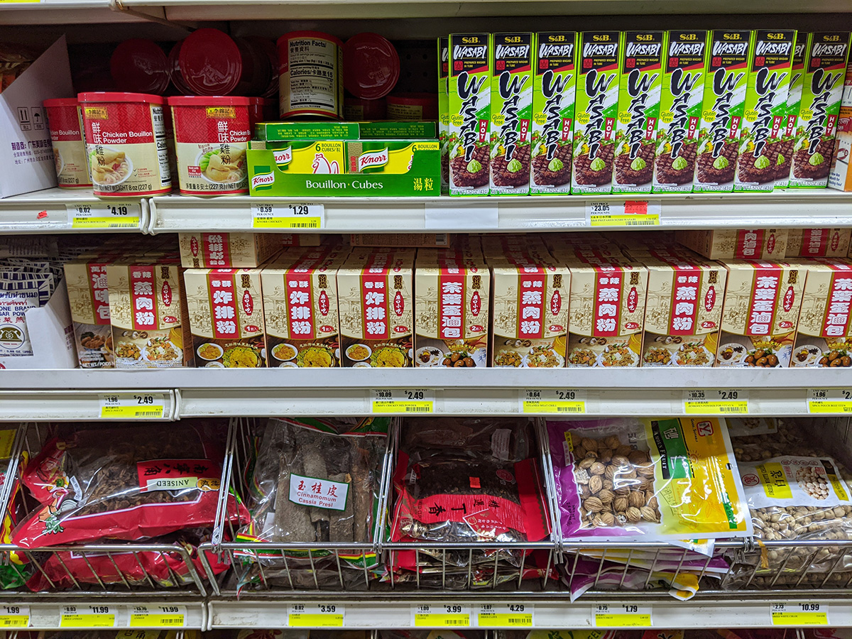 i headed out to boston around 1:30pm. it was too cold for shorts, so i changed into some jeans and a jacket. i was collecting kimchi-making ingredients. i decided to empty out my paocai jar and refill it with fresh vegetables. my mother has also asked me to make "green cabbage" kimchi, the same one i made with regular cabbage (st.patrick's day sale) back in late march. people really love it because it's crunchy and not very spicy, but i don't like it because the flavor isn't as strong as traditional kimchi made with napa cabbage. first stop was c-mart, before visiting ming's market at the other end of the street.