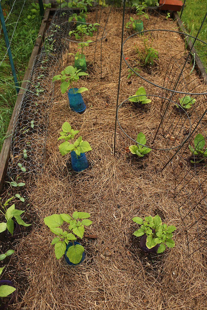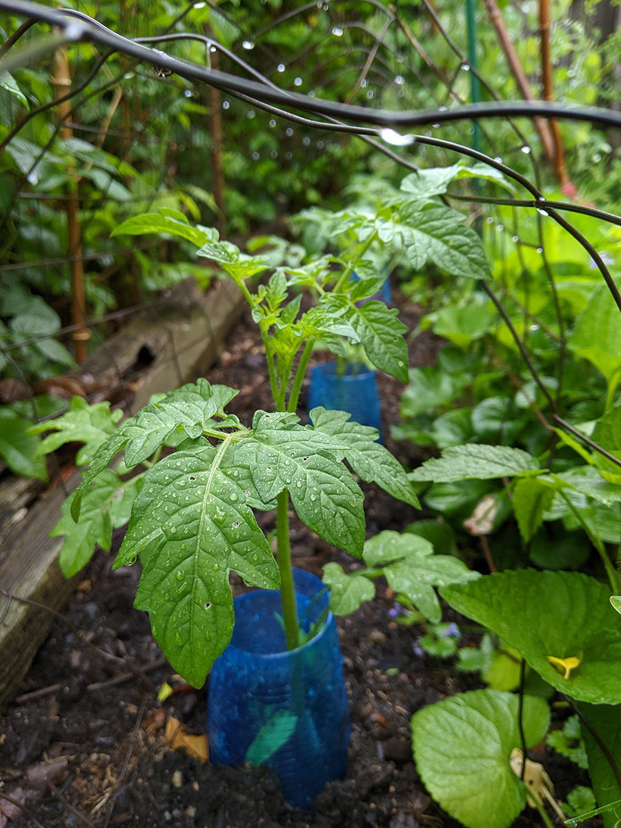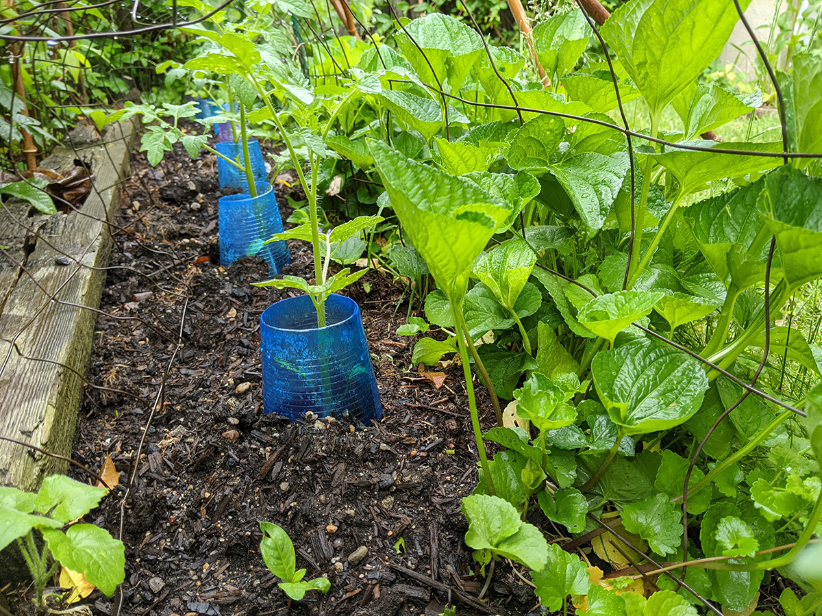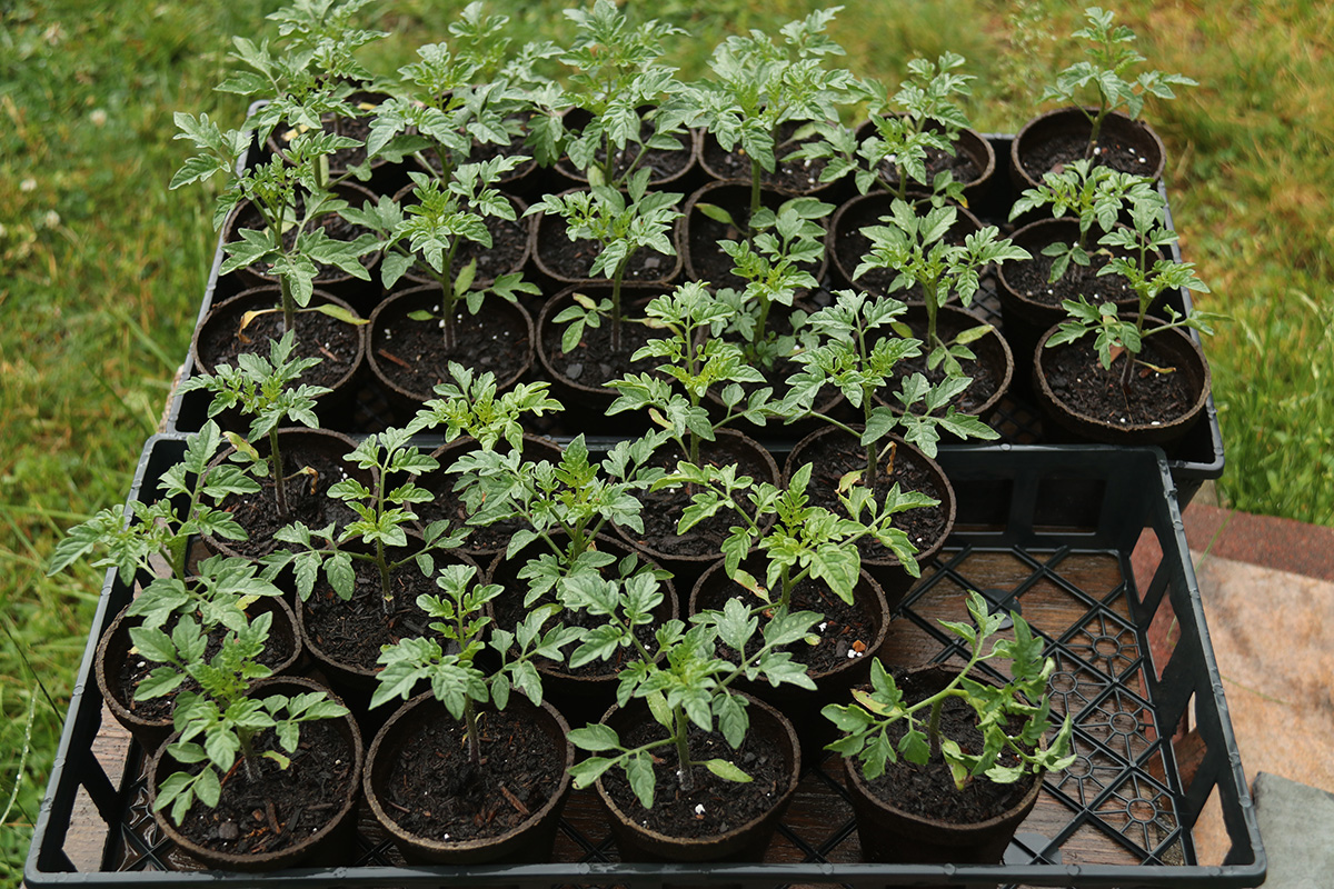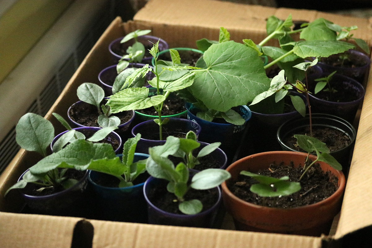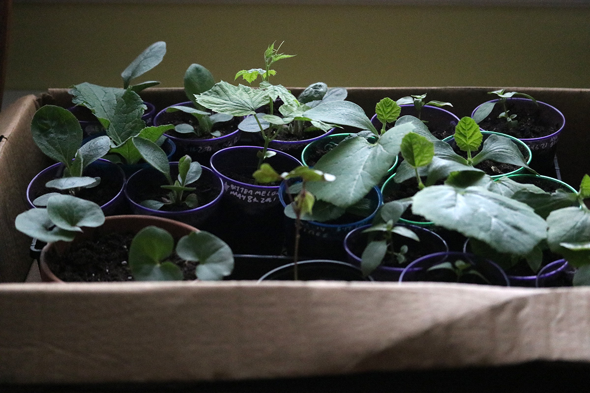 my father came to pick me up in the late morning because it was raining, and i moved out the last of my grow closet seedlings, including 4 buttercup squashes, 1 bitter melon, 6 thai basils, 5 rudbeckia 'cherokee sunset', and 2 snowy spires.
