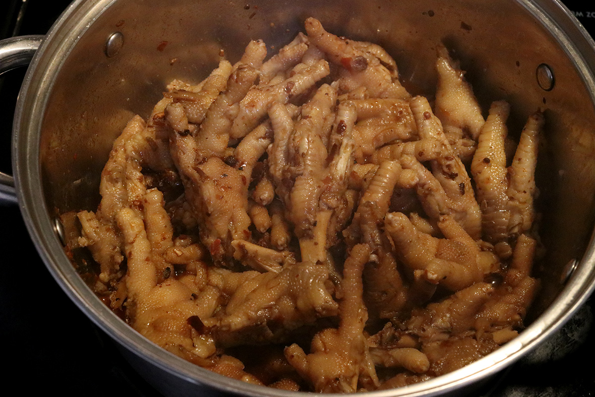for lunch my mother made some rice noodles. she was also cooking the chicken feet and after she poured in the spice packet, i ate them while watching the pacific war in color on the smithsonian channel.