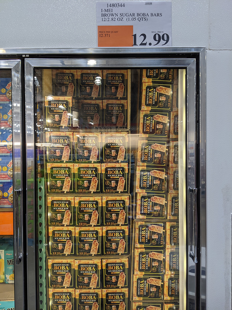 we got to the cafe by 11:30am to drop off the supplies before heading to belmont. my mother made mini wonton soup for lunch. afterwards we tried the imei-brand 'brown sugar boba ice milk bars' we got from costco for $12.99 a box (12 bars). it was really good, reminded me of taiwanese pudding, got a very deliciously rich milk and caramel flavor with a soft boba interior. my mother immediately said we should buy more the next time we're at costco before they sell out.