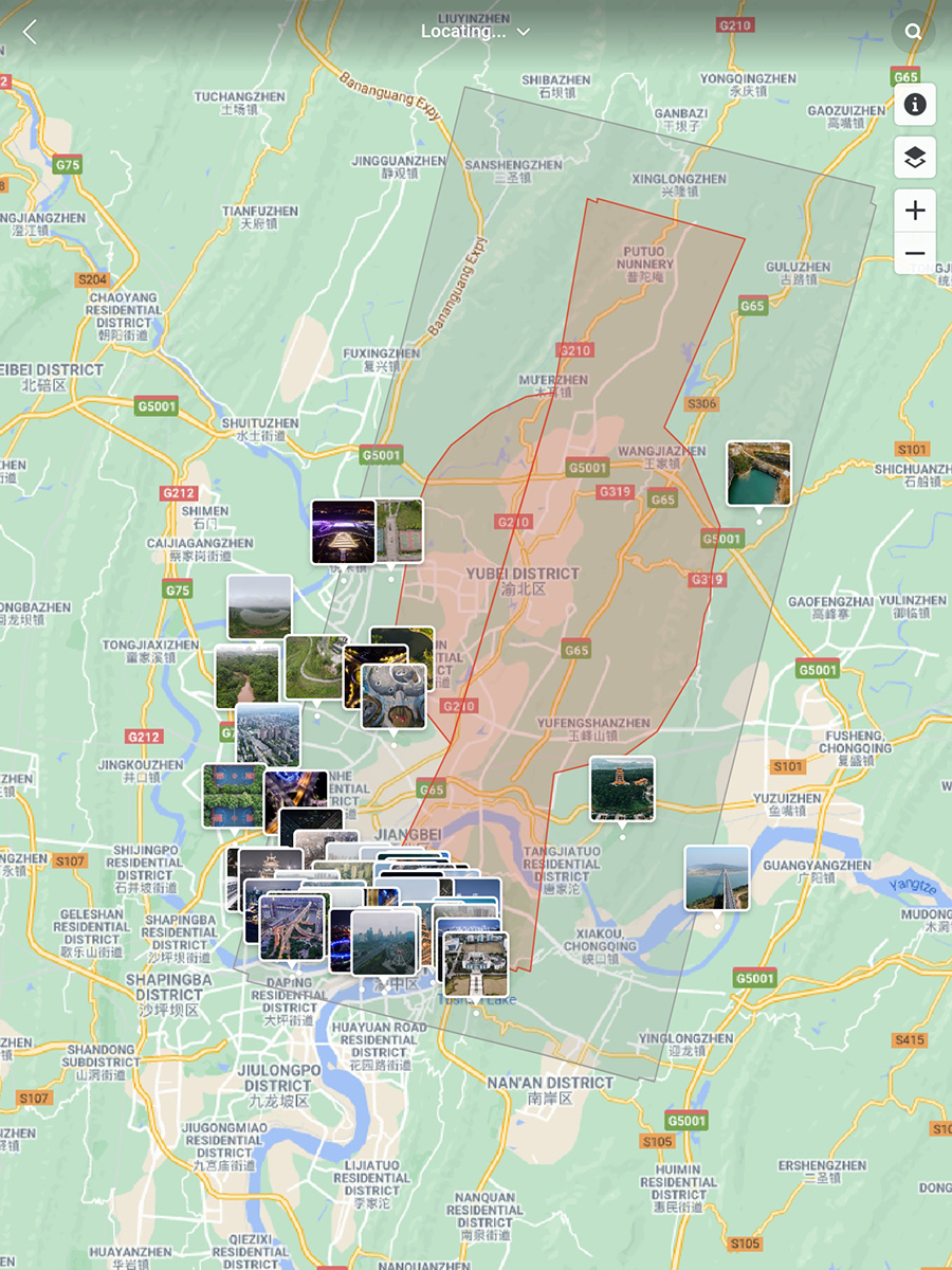 a few more things about the DJI fly app: under profile, all my auto-sync flight records show up immediately. on my pixel 3XL, it usually takes a few minutes to load. in the warning zone, normally it shows me where i am and what areas nearby are flight restrictions. however on the ASUS, it just says "locating..." and shows me a map of beijing. i waited to see if it'd find my current location but it never did. not a big deal, since i can just type "cambridge" and it'll bring it the local map and restrictions. but out of curiosity, i zoomed out and found chongqing. it showed the nearby airspace restrictions, but what's cool is it also showed user-uploaded photos. i saw some amazing photos of chongqing taken with the drone, it made my very nostalgic to revisit one of these days.